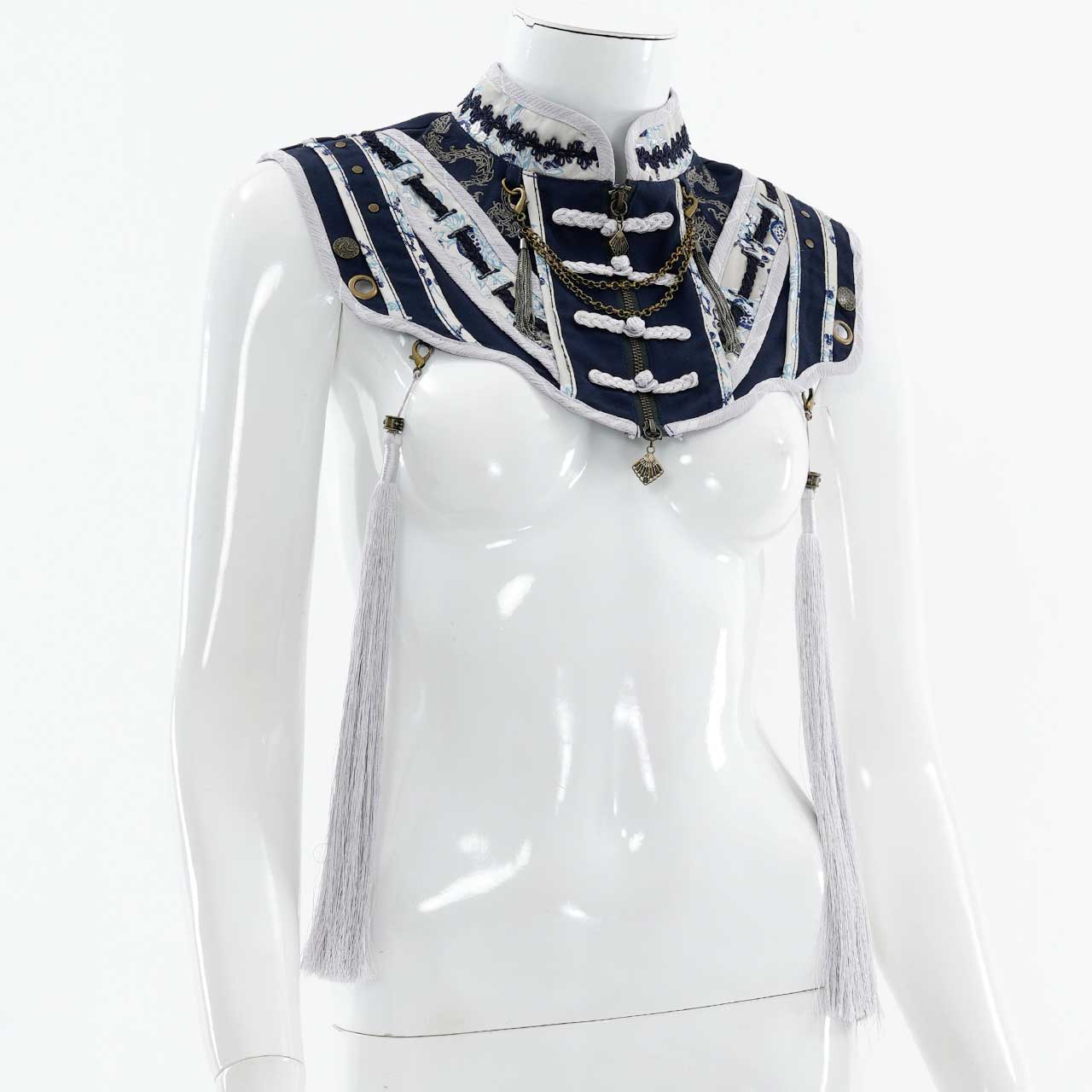 フロントジップにより着脱が快適です。ちらりと魅せるインナーアクセントとしても、Tシャツやブラウスに合わせてカジュアルながらもエッジを効かせたコーディネートにもおすすめ。大正ロマンテイストや浴衣着物コーデ等、現代的なスタイルのコーディネートにも優しく調和します。※房飾りのお取り扱い:水濡れ/強い摩擦にご注意ください。お洗濯の際には長い房飾りは必ず取り外してください。