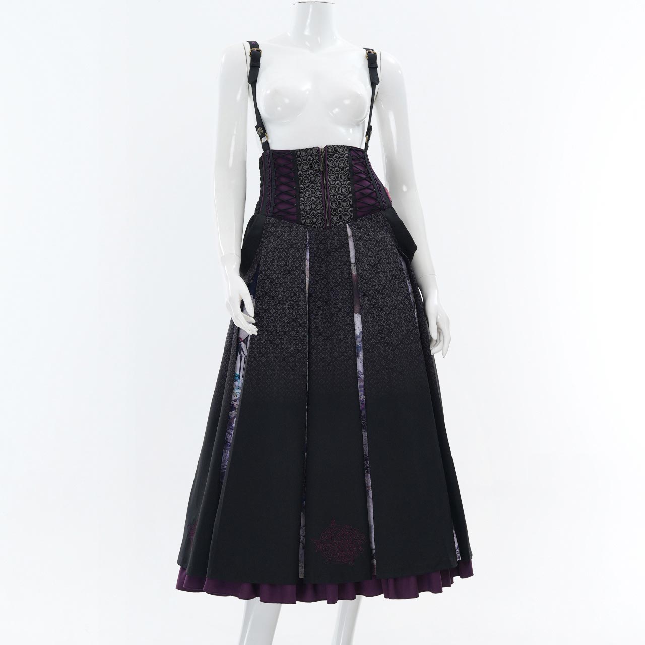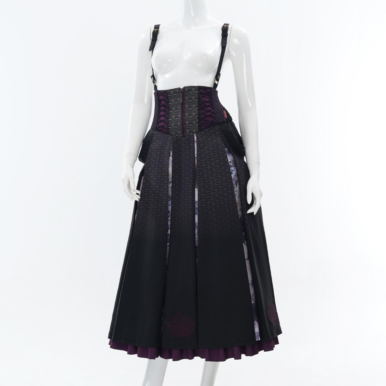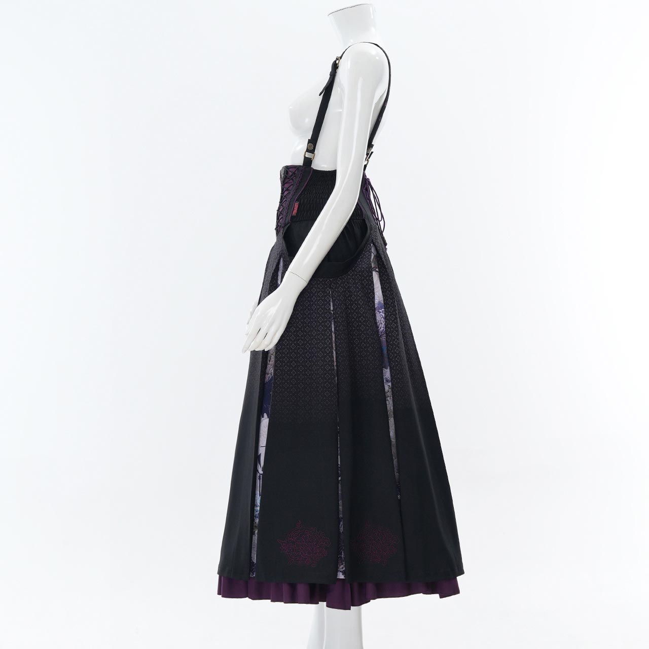 夜に見た夢の断片のように揺らめくプリントをあしらった袴スカート。