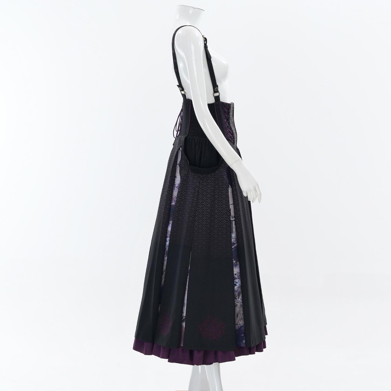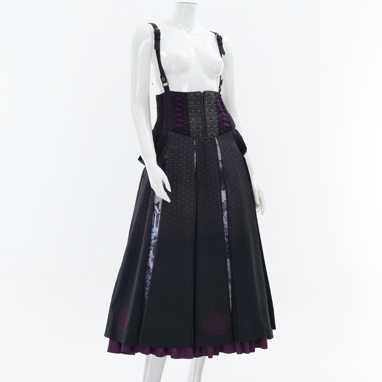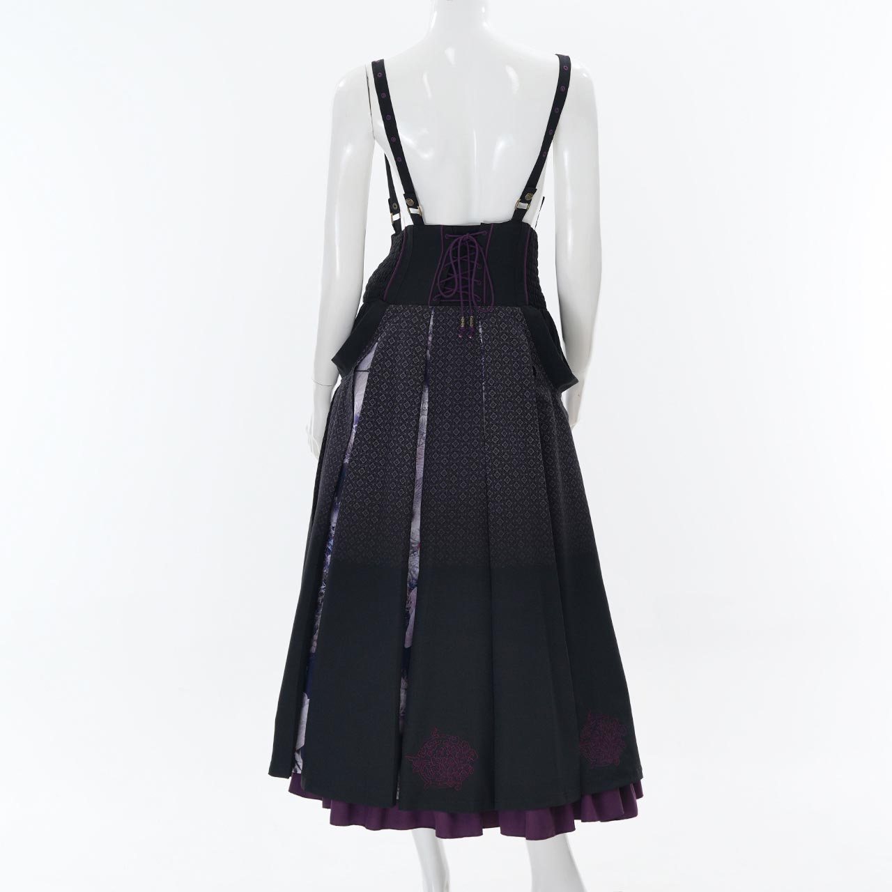 夜に見た夢の断片のように揺らめくプリントをあしらった袴スカート。
