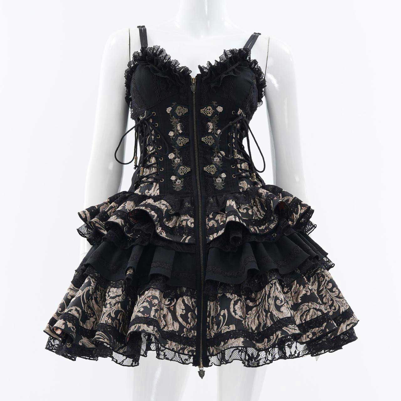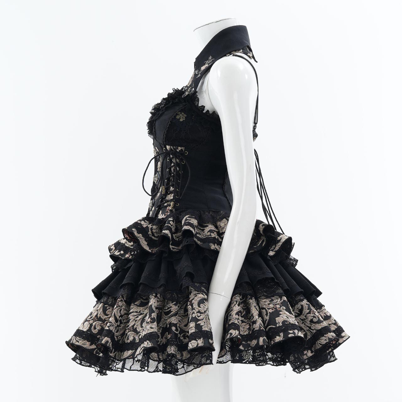 豪華なジャガード生地は高級感たっぷり。レースアップや甘めフリルが乙女心をくすぐる可憐なデザイン♥