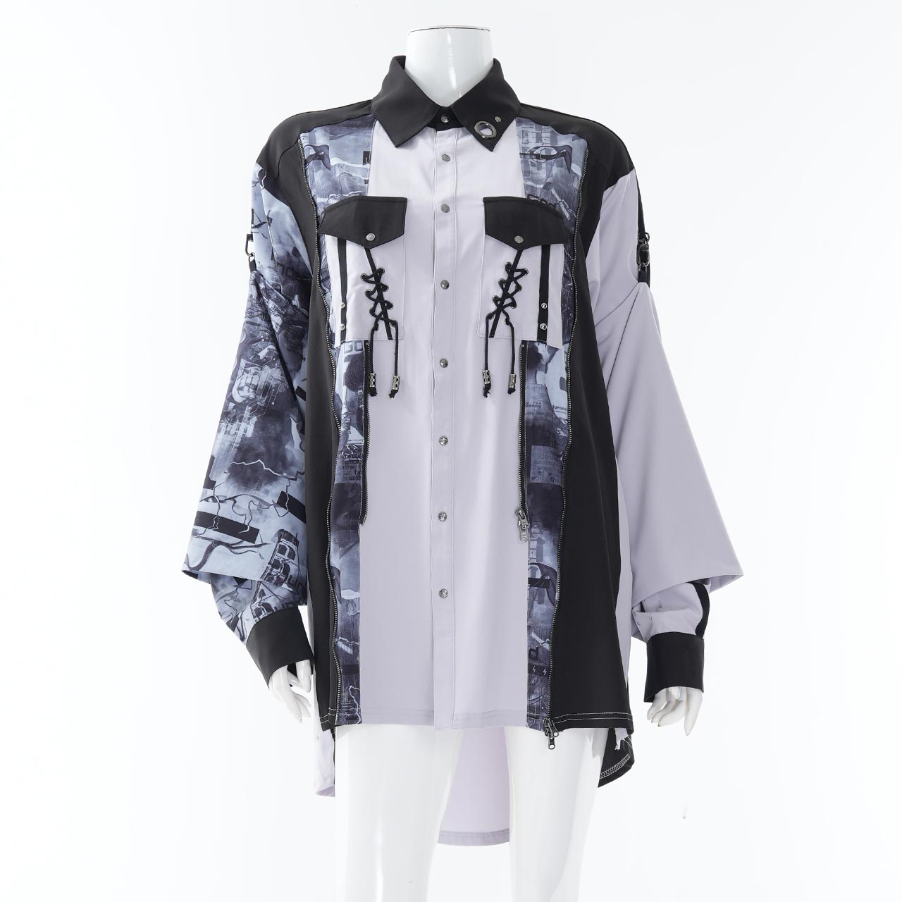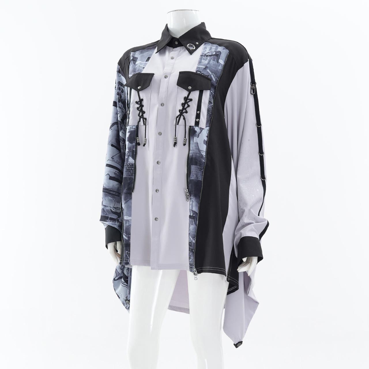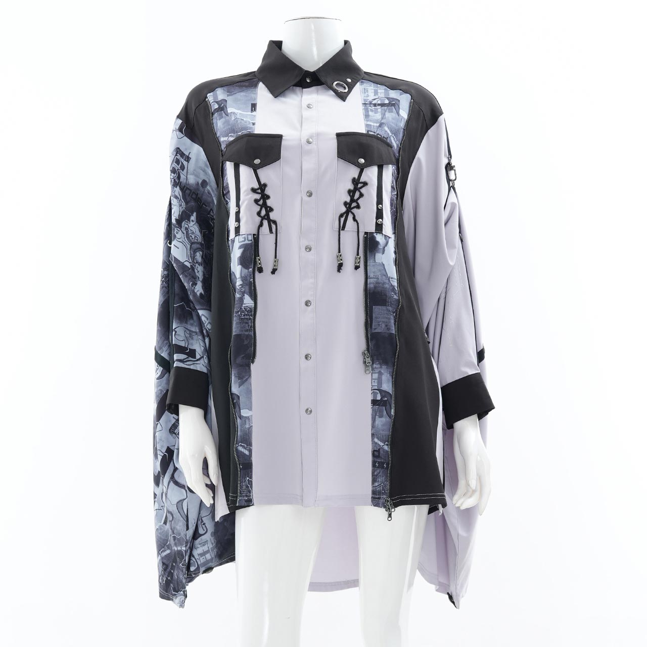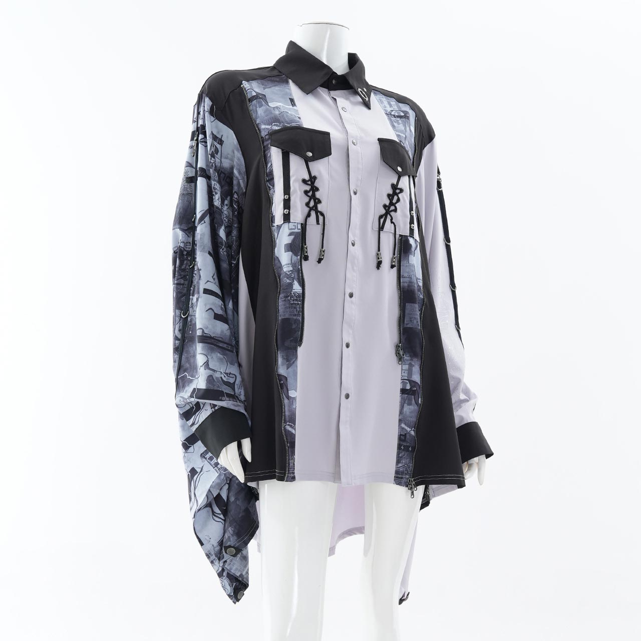 和装の意匠をモダンに再構築した着物袖ブラウス。