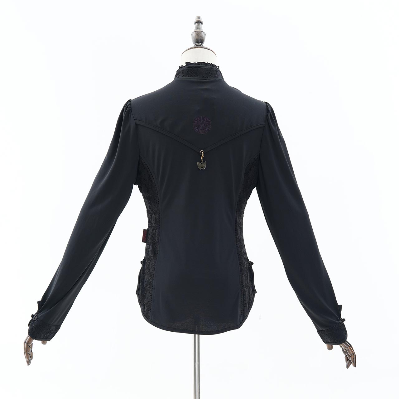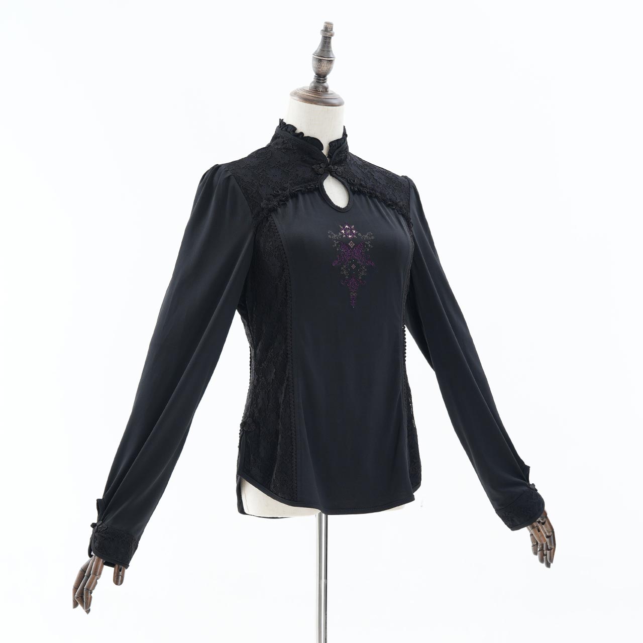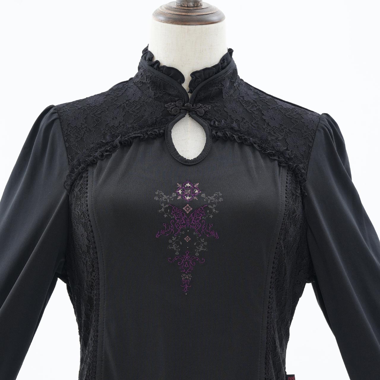 胸元の刺繍とチャイナ釦が印象的で、素肌に溶け込むような透け感が上品。