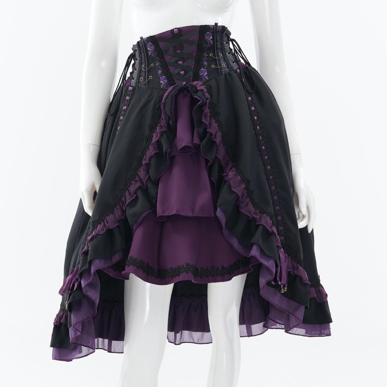 スカートのレイヤードデザインはスタイリッシュさとフェミニン感の甘辛MIX。
