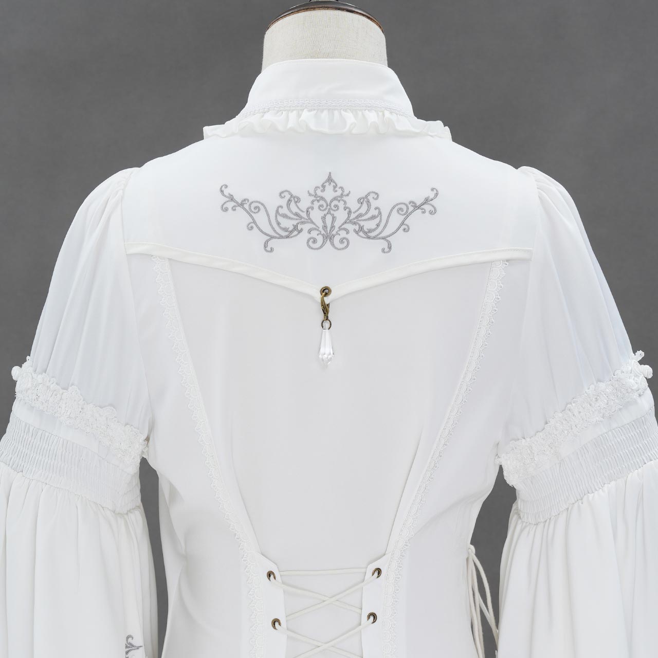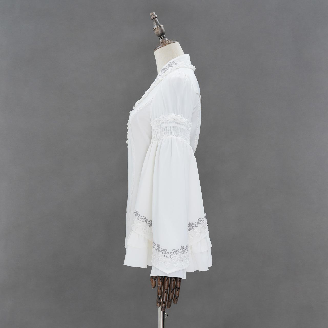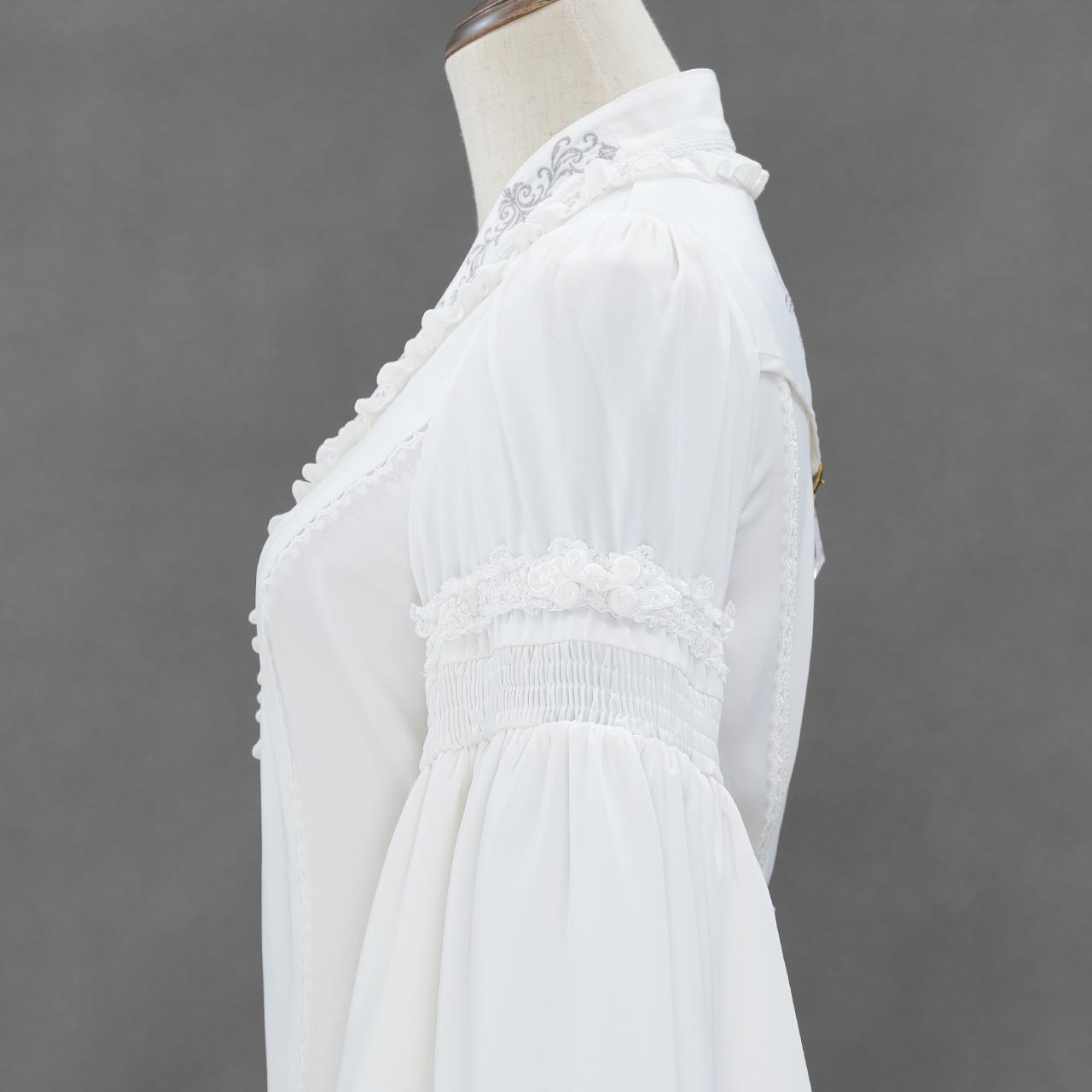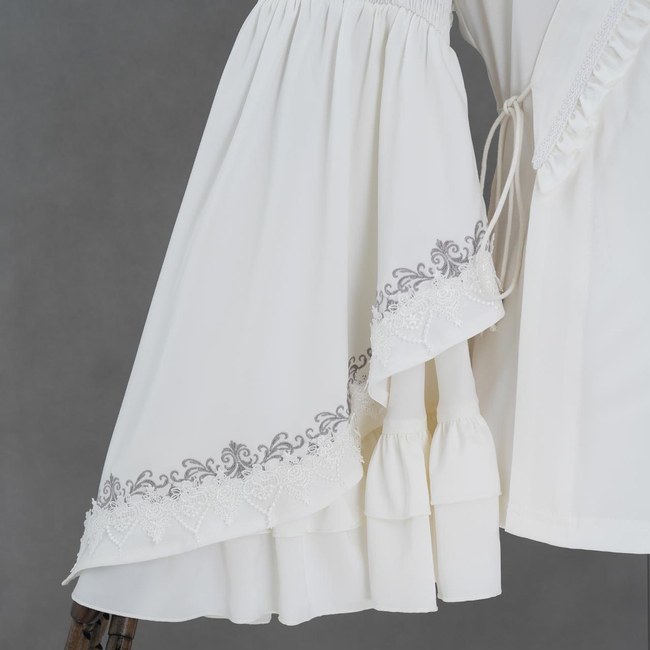 袖口には繊細なレースをあしらい、手の動きに合わせて軽やかに広がるシルエット。