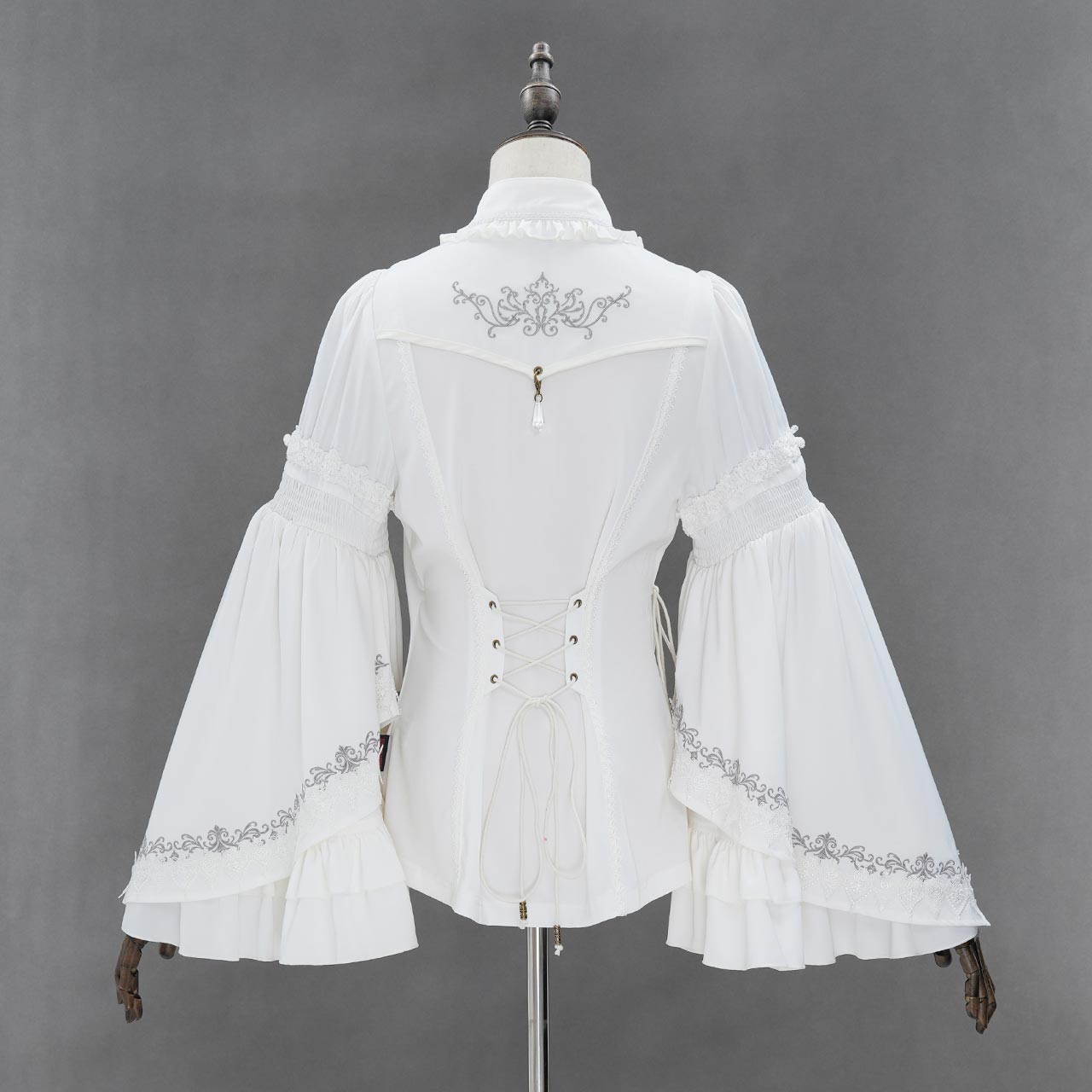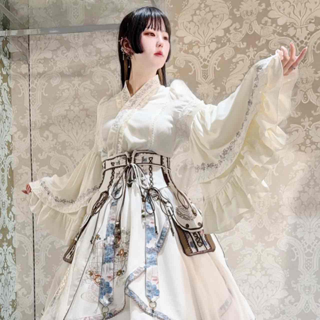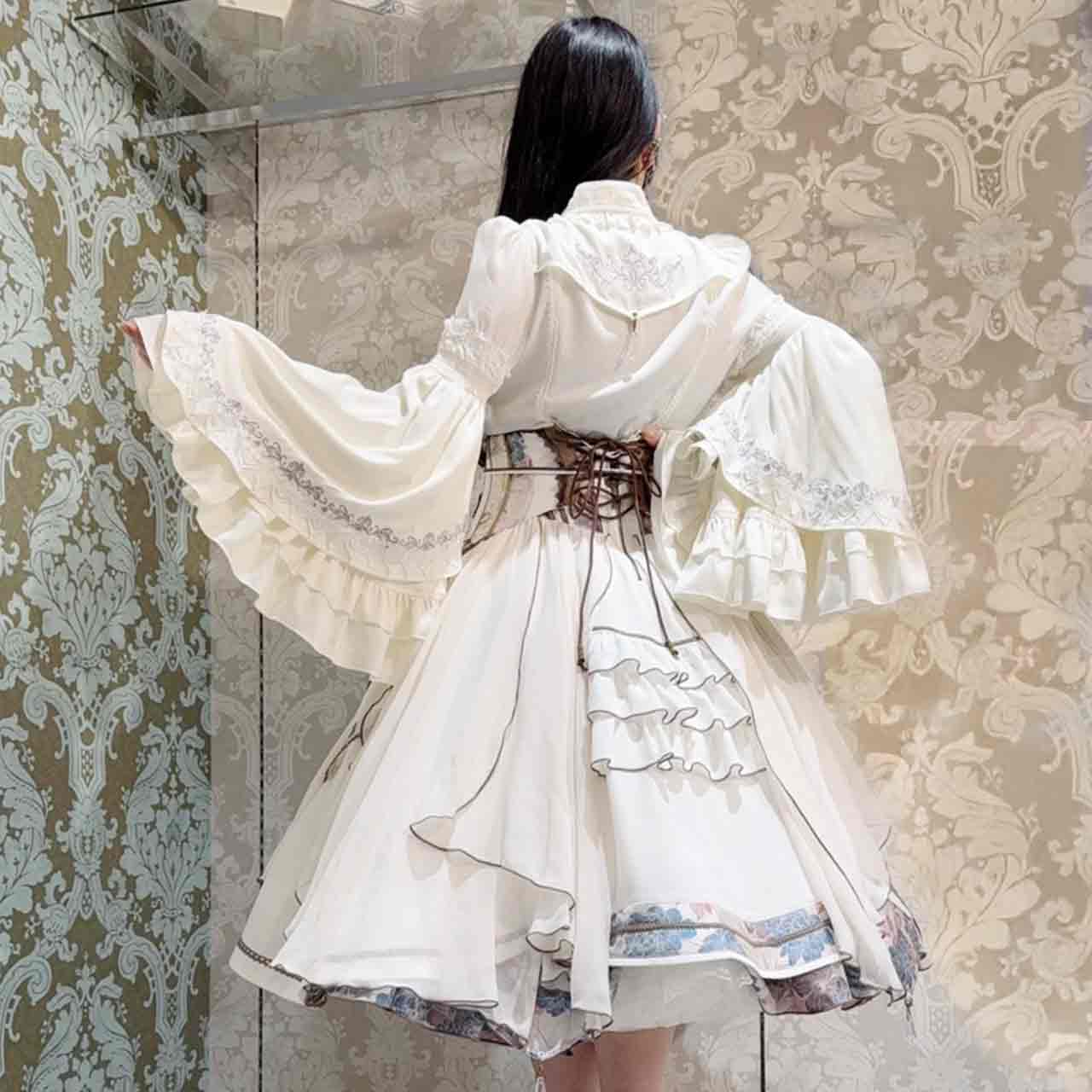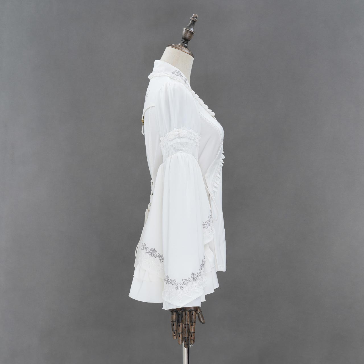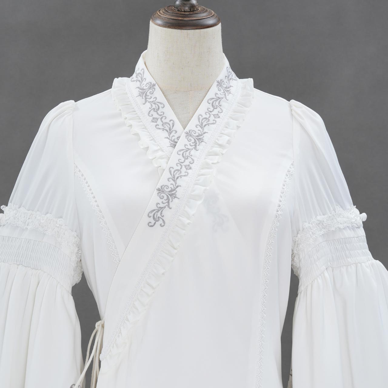 袖口には繊細なレースをあしらい、手の動きに合わせて軽やかに広がるシルエット。