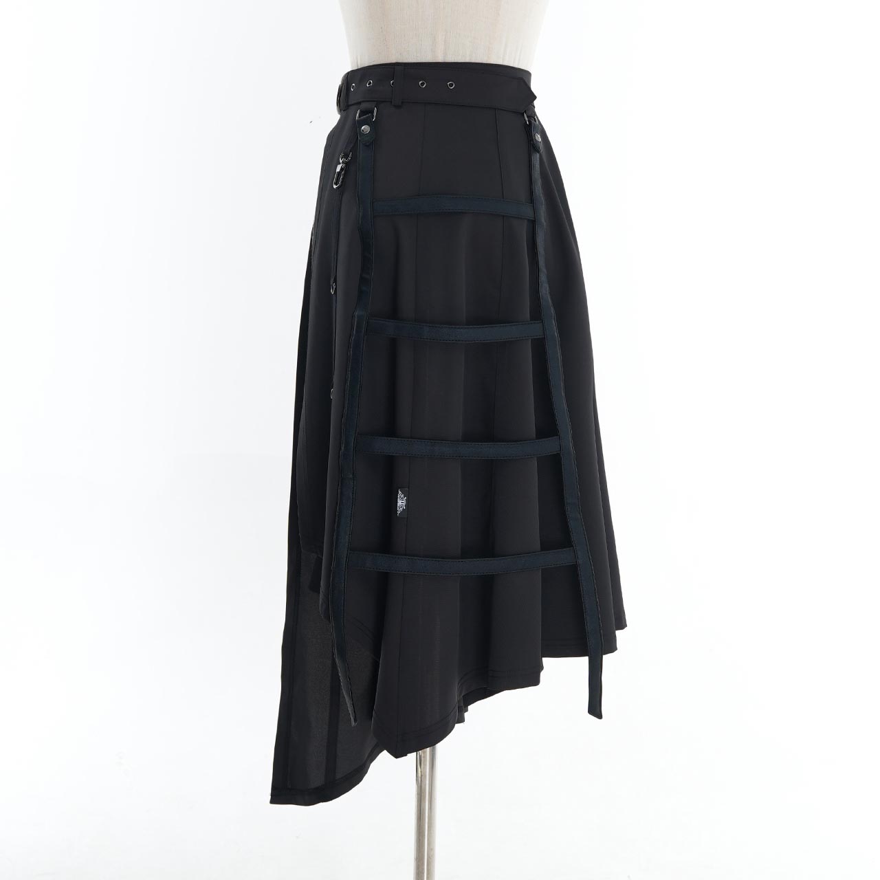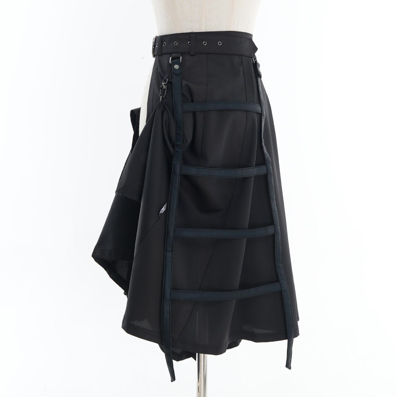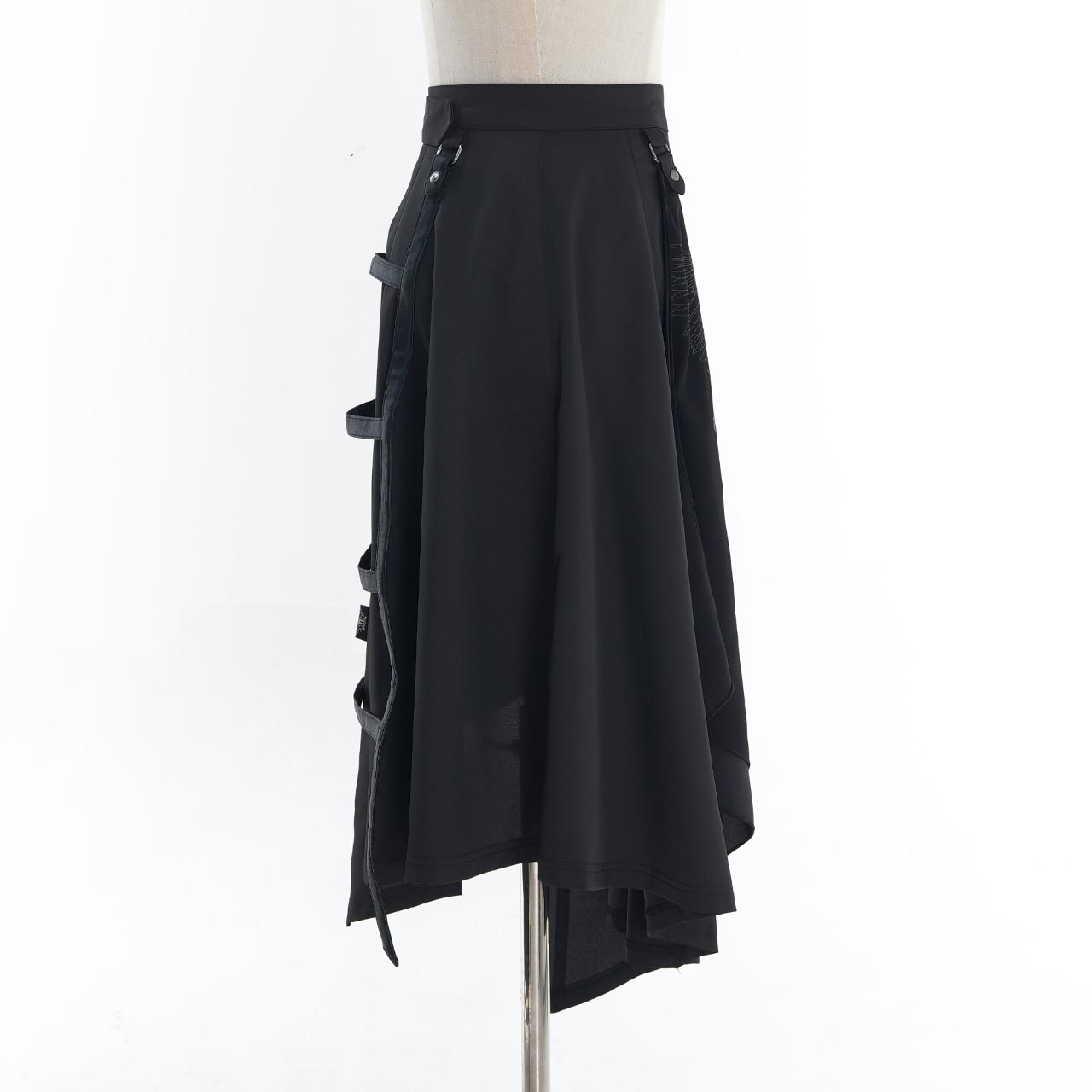 視線を縦に流すアシンメトリーなカットラインに、長さ調節が可能なデザインを採用。