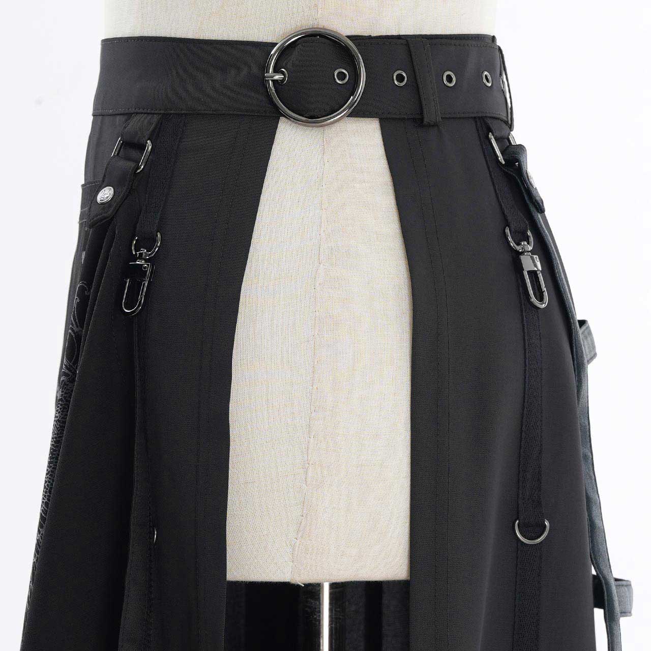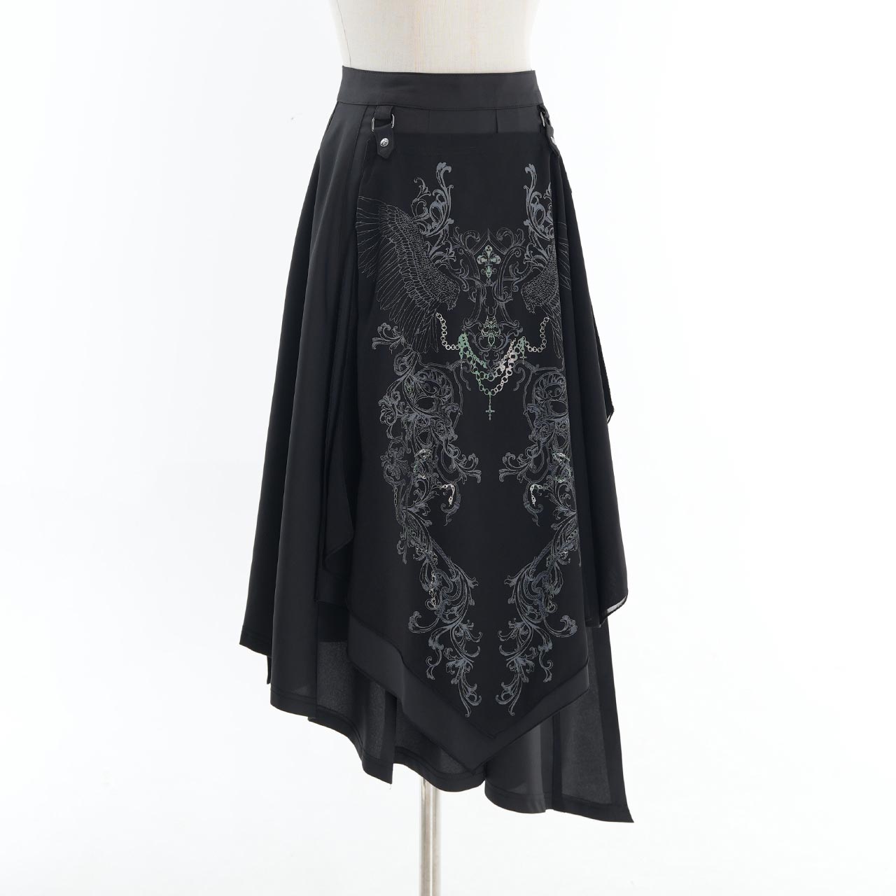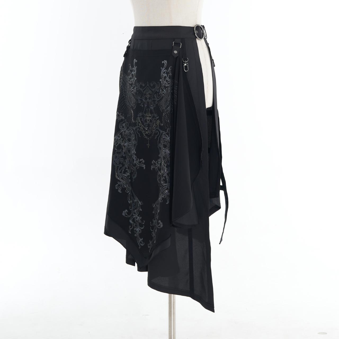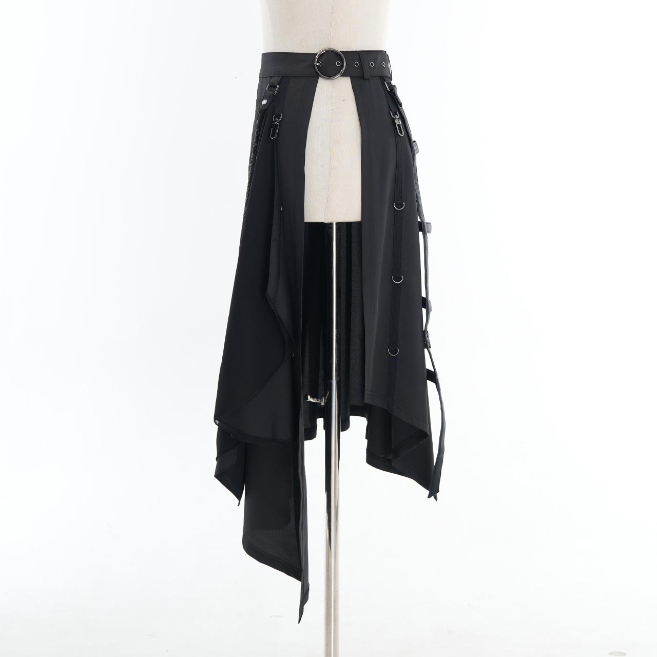 視線を縦に流すアシンメトリーなカットラインに、長さ調節が可能なデザインを採用。