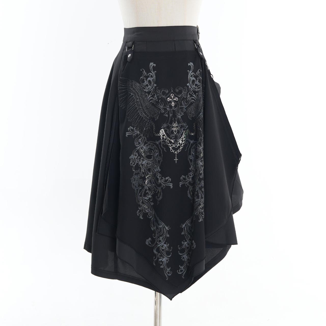 裾まわりにはシフォン生地のレイヤードを配し、歩くたびに軽やかな揺れと透明感をプラス。