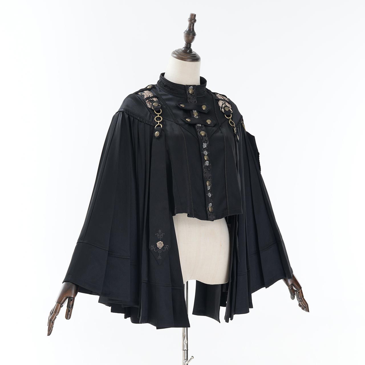 キュート&エレガントな薔薇刺繍入りケープジャケット。