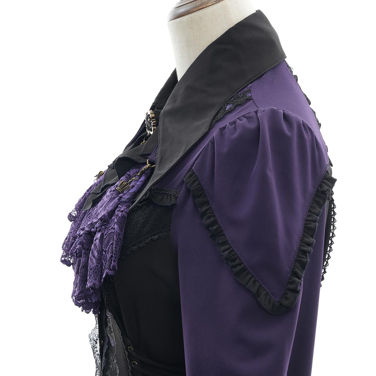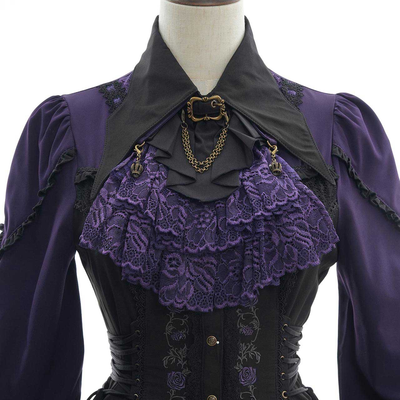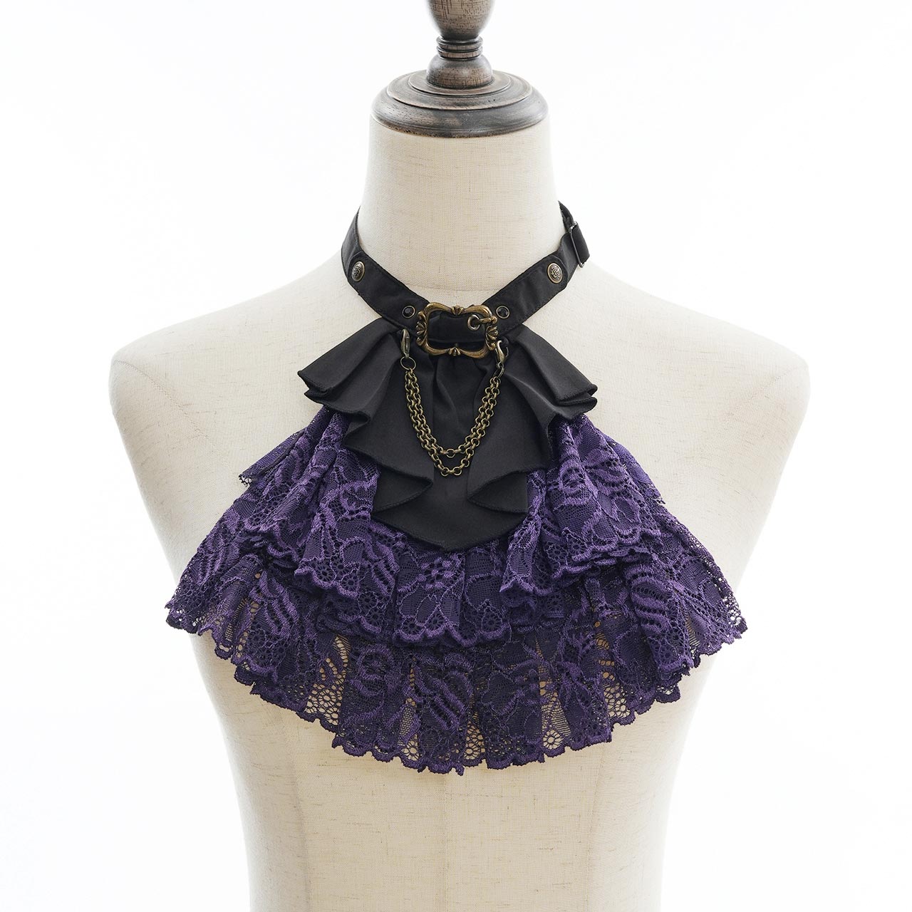 繊細なレースをたっぷりと使用し、豪華な雰囲気を演出するジャボタイは簡単に取り外しができるデザインです。