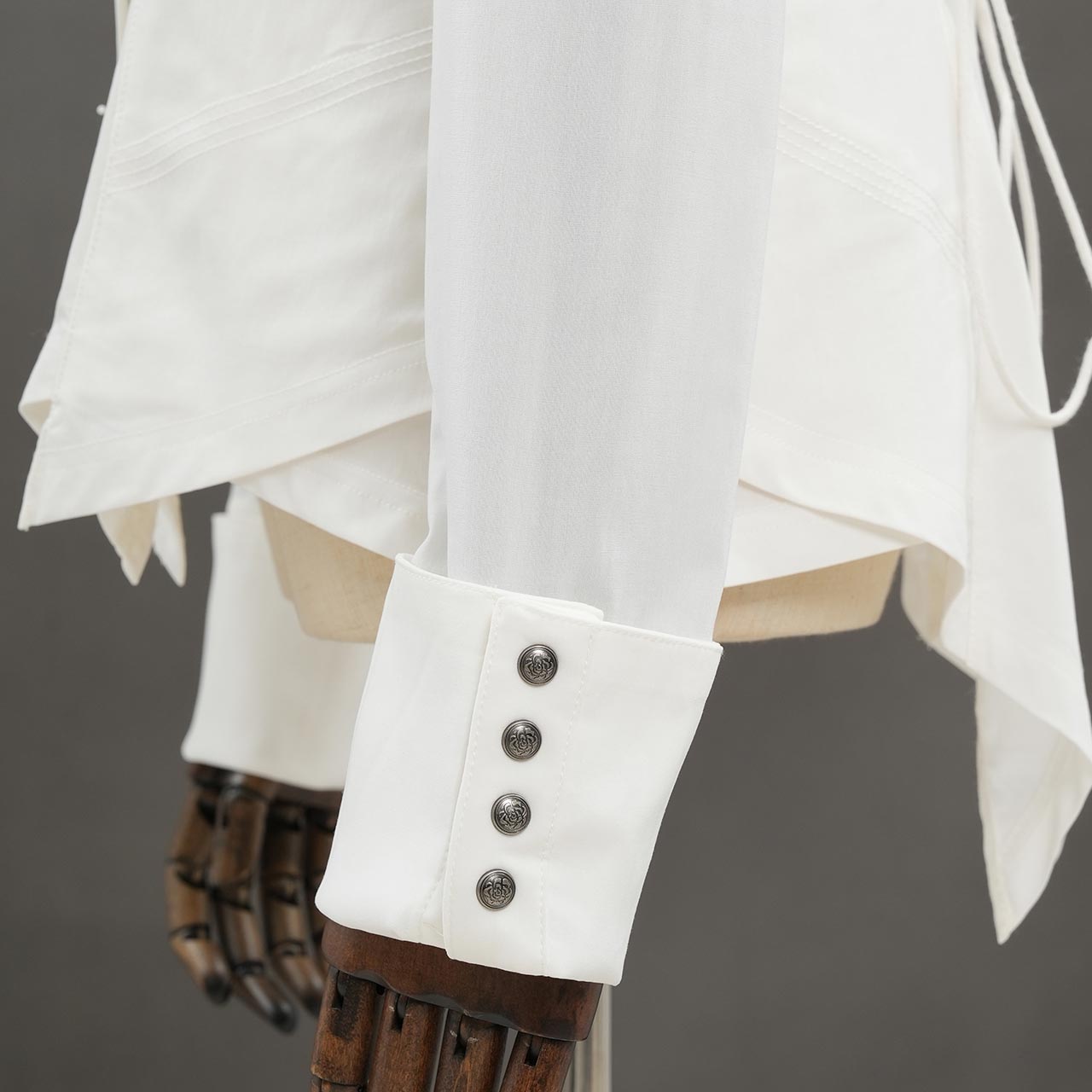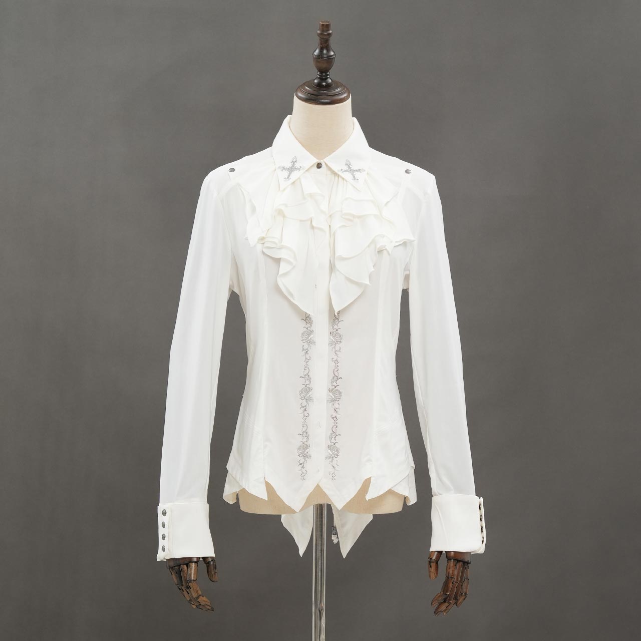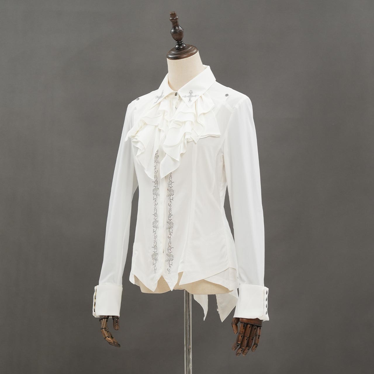 華やかなギザギザフリルデザインと、襟元に施した繊細な刺繍が印象的なブラウス。