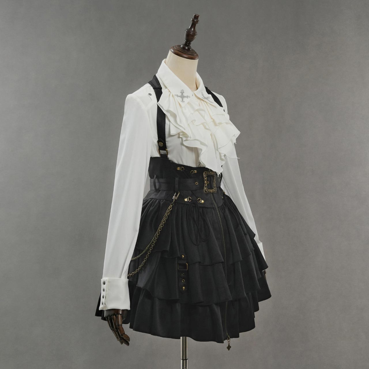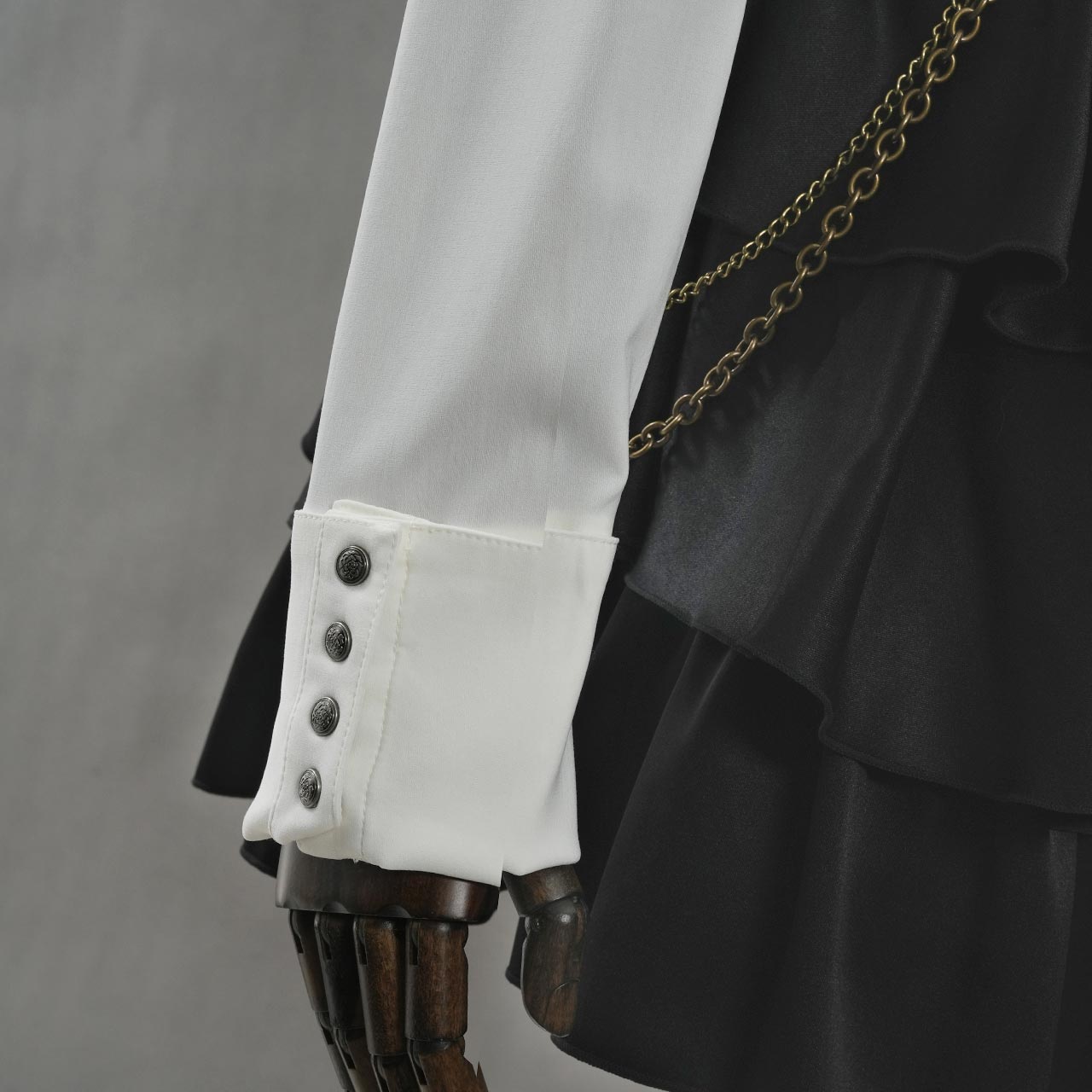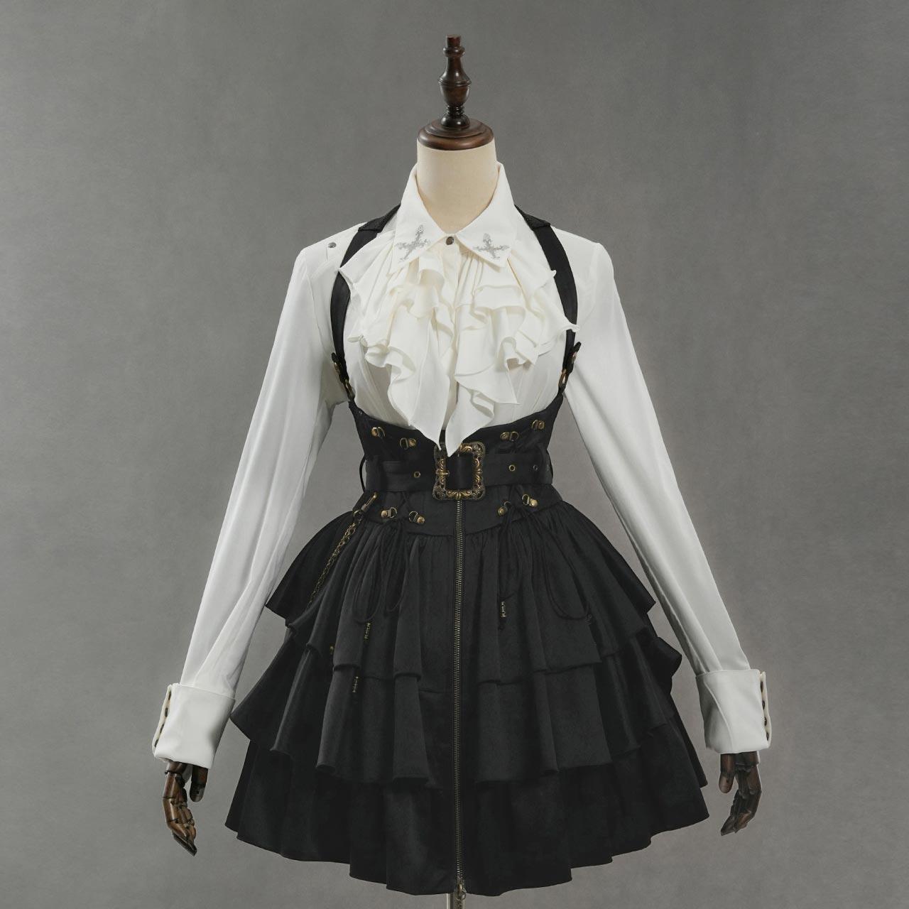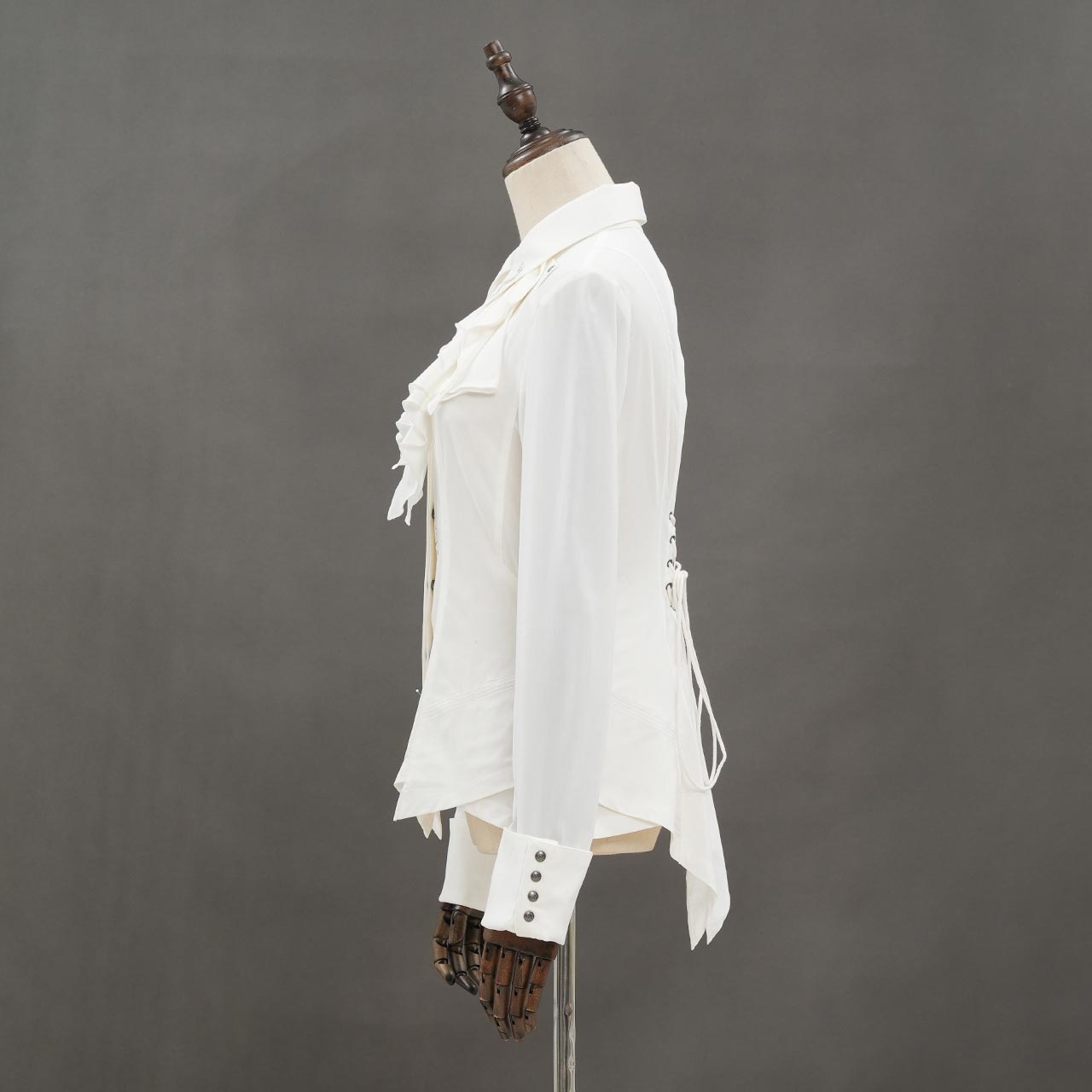 華やかなギザギザフリルデザインと、襟元に施した繊細な刺繍が印象的なブラウス。