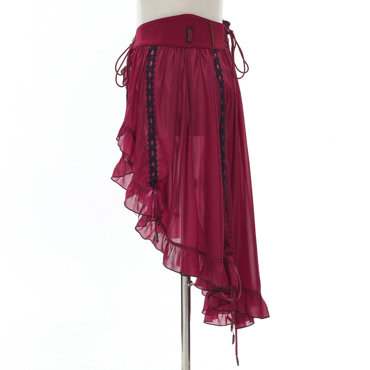 きらめくラメを織り込んだシフォンが、淡く光を透かすオーバースカート。