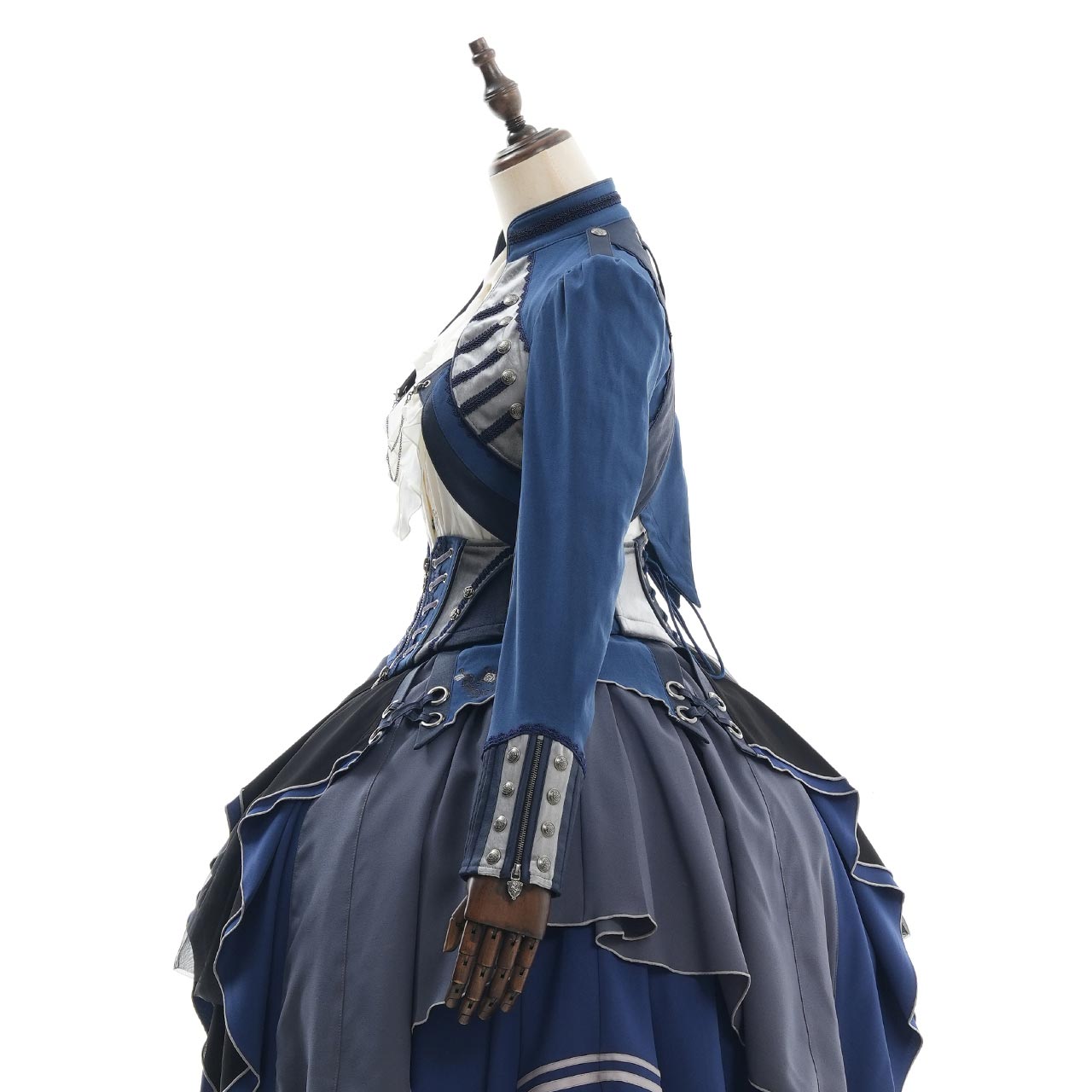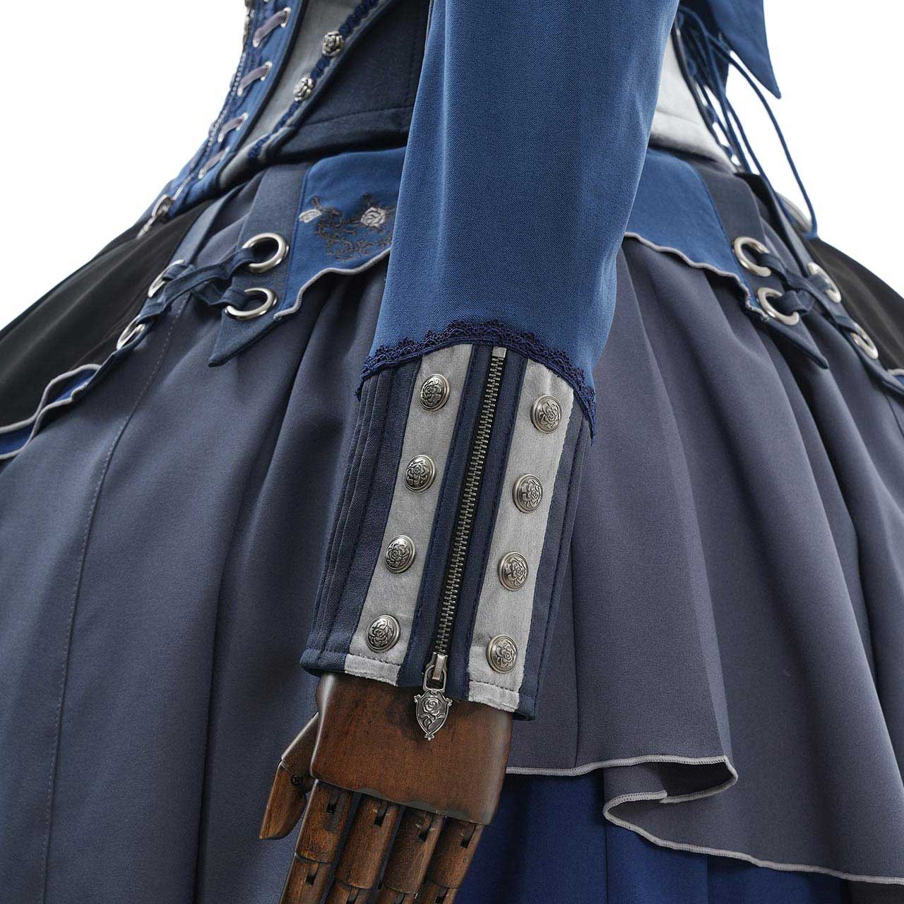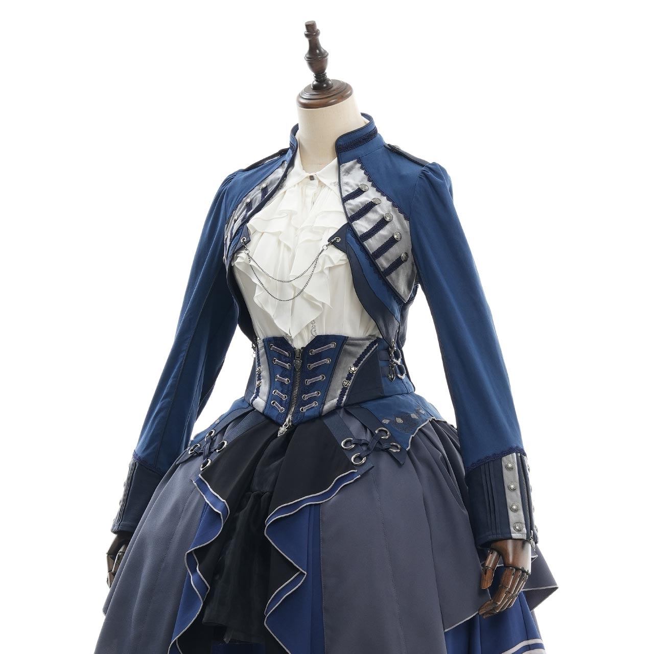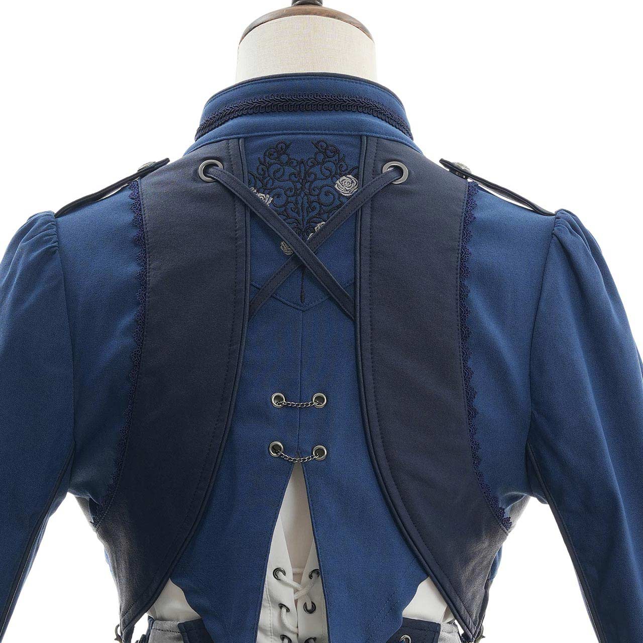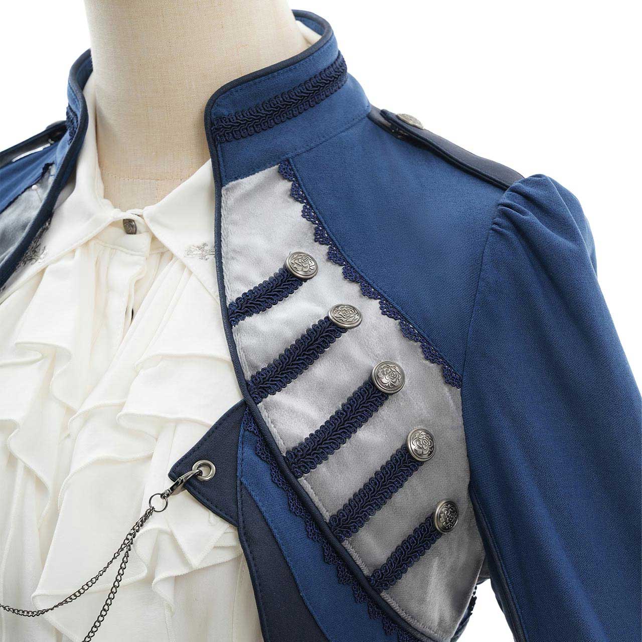 ベロアと金具の装飾が、刃の輝きを思わせるポイント。