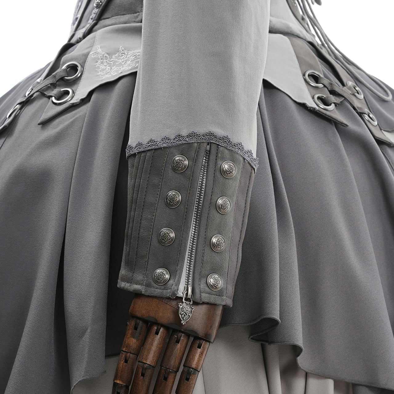 ベロアと金具の装飾が、刃の輝きを思わせるポイント。