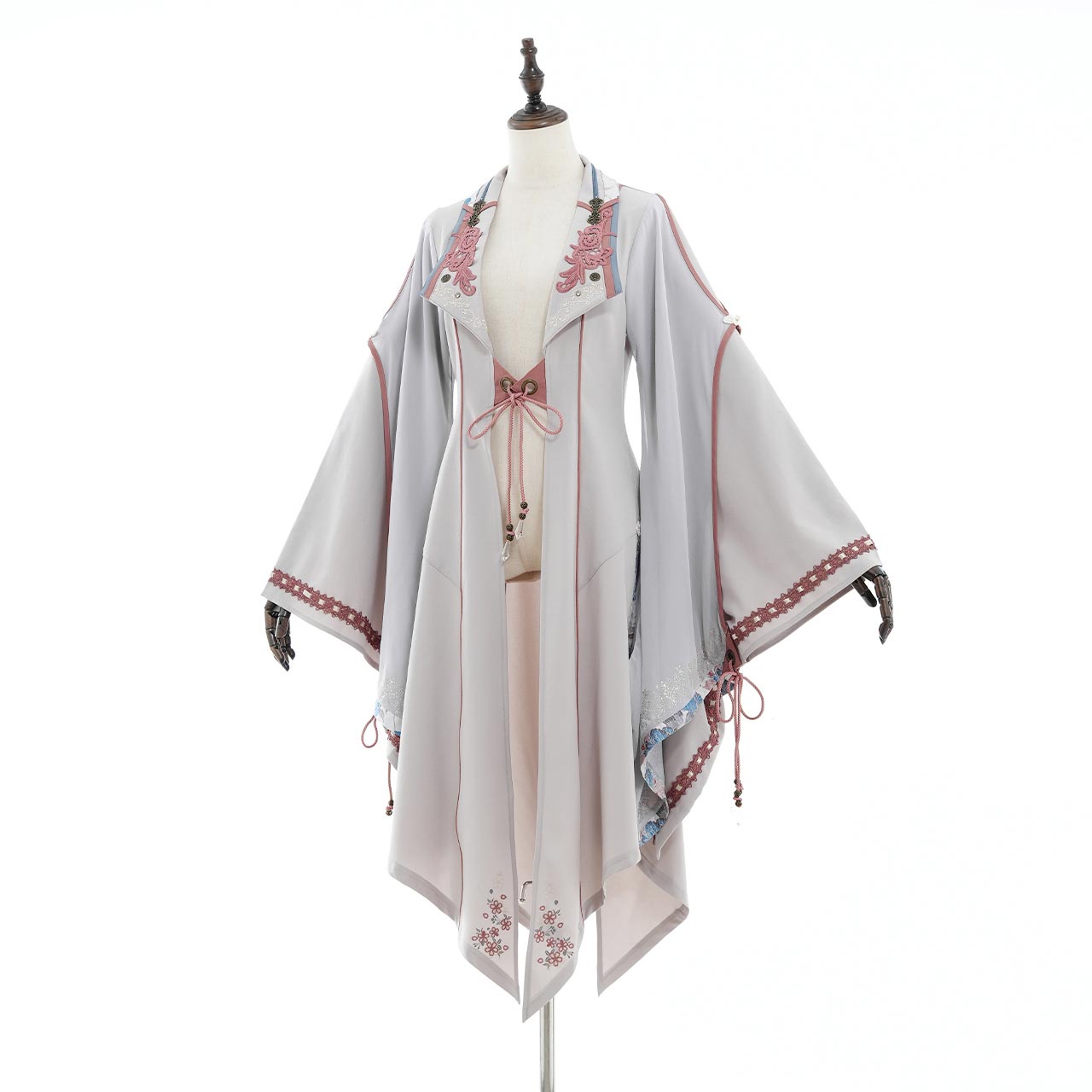 透け感のある素材と装飾ディテールを組み合わせたロングカーディガン。