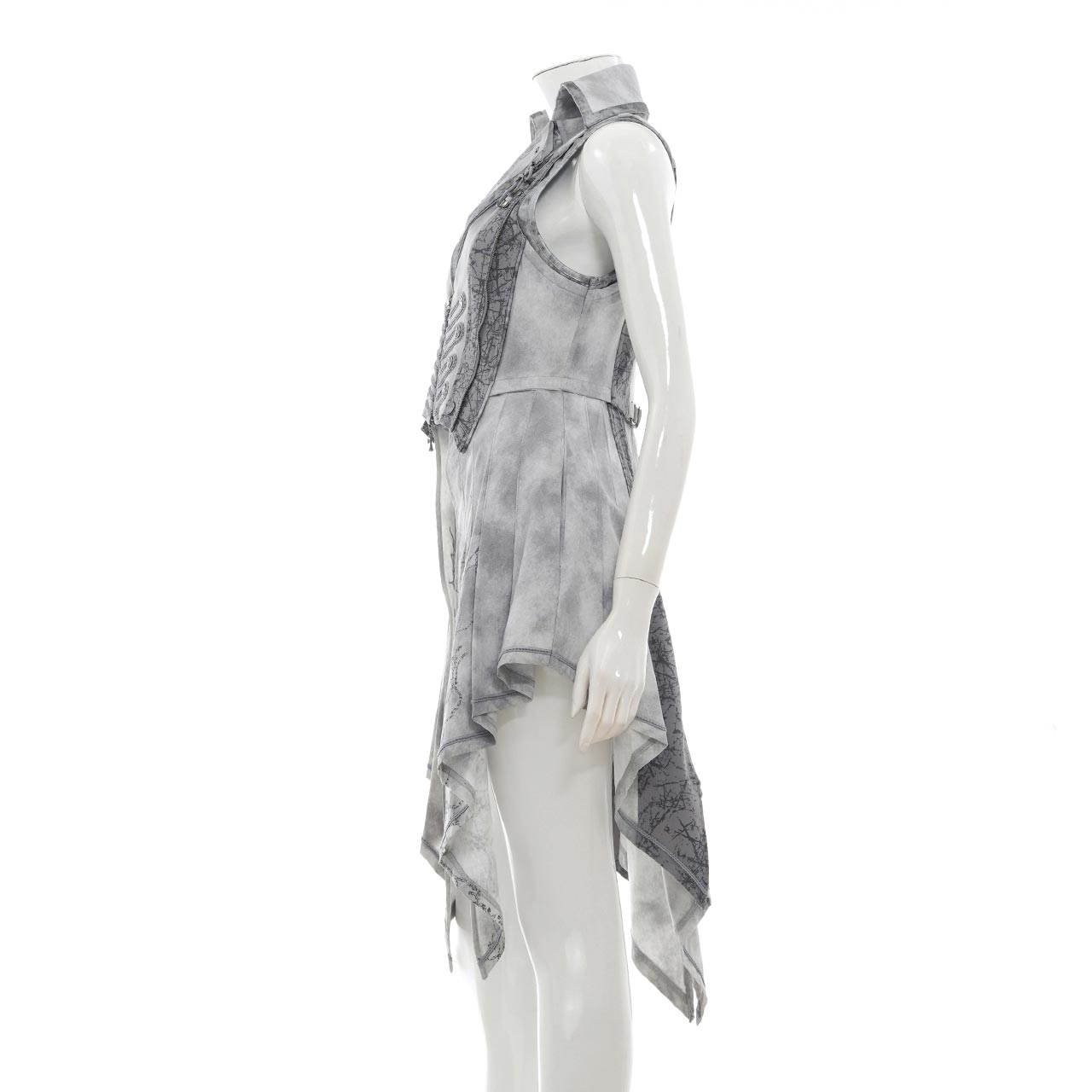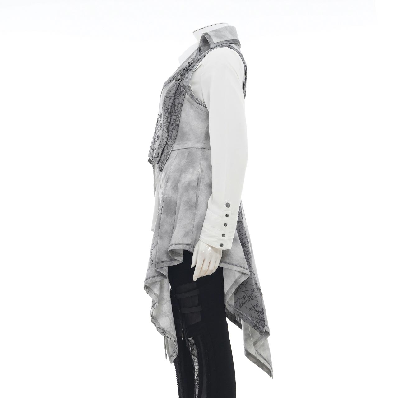 ウエストから下の部分は、釦で取り外し可能の為、ミディアム丈のベストとしてもご使用いただけます。