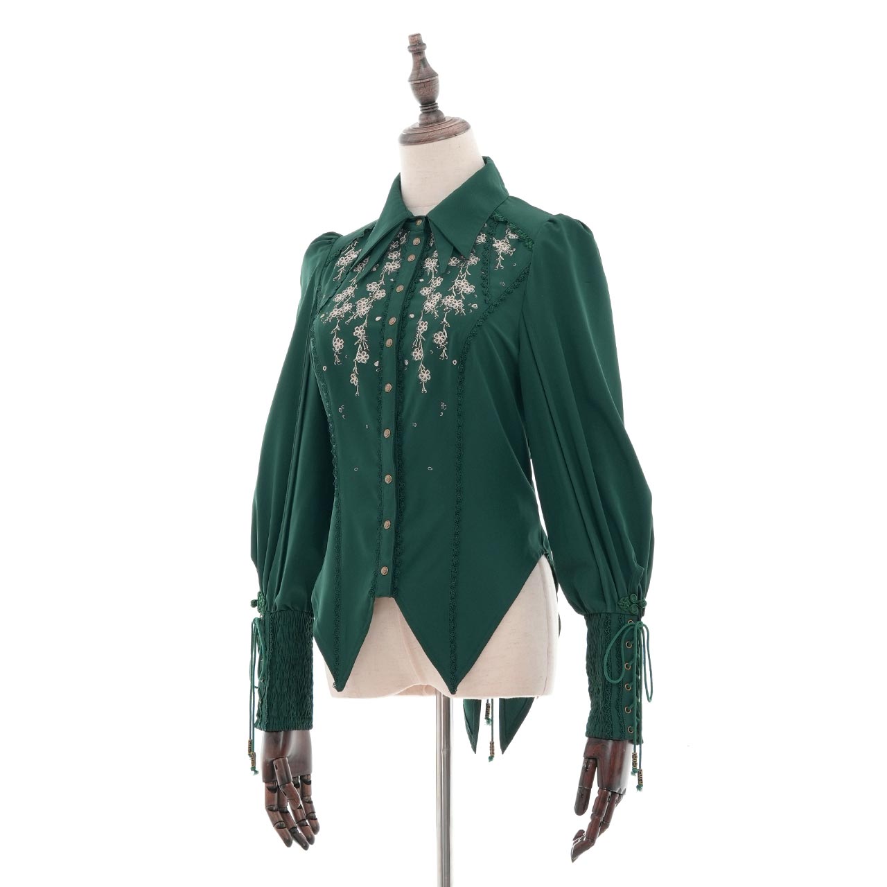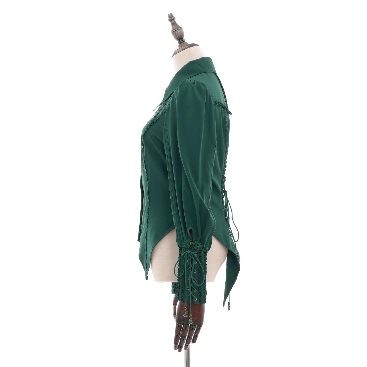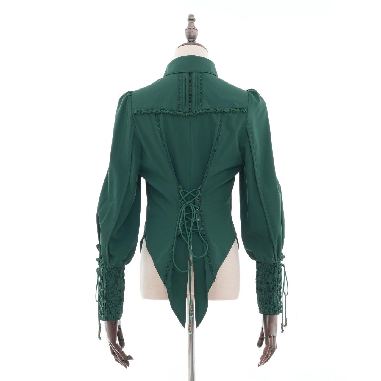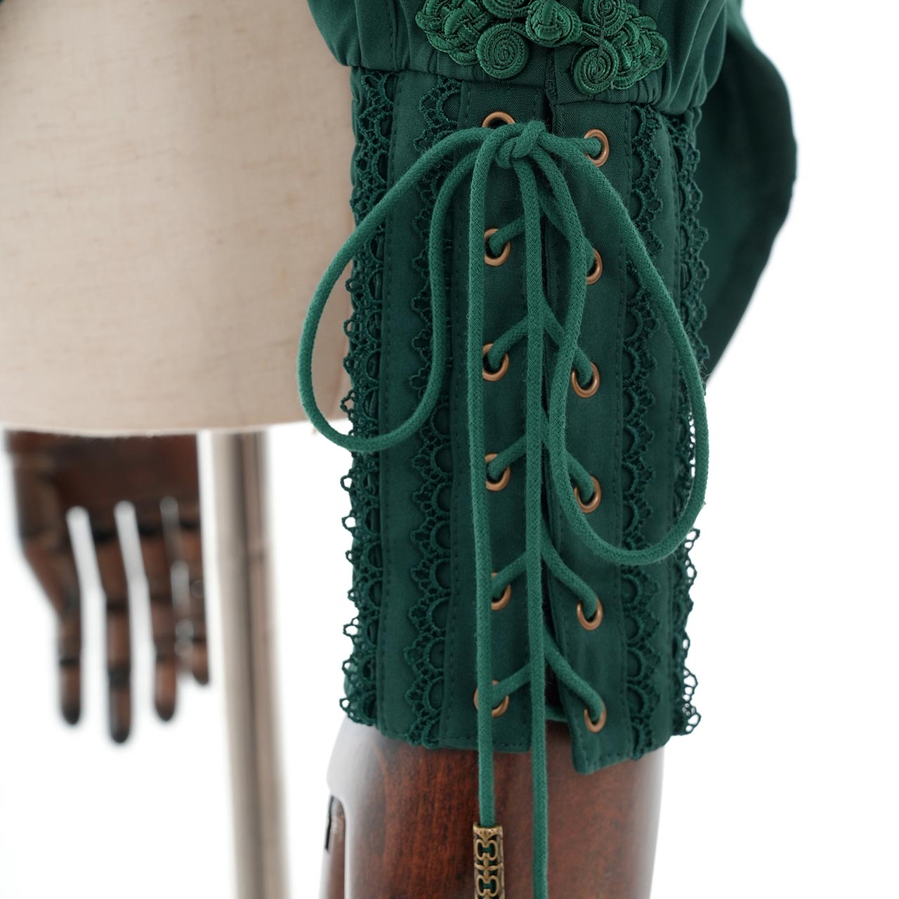 袖口のレースアップやリボンなど、細部にまでこだわりを詰め込みました。
