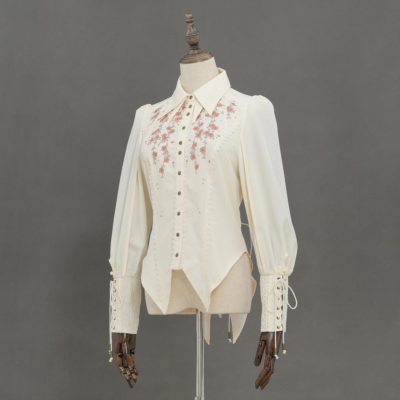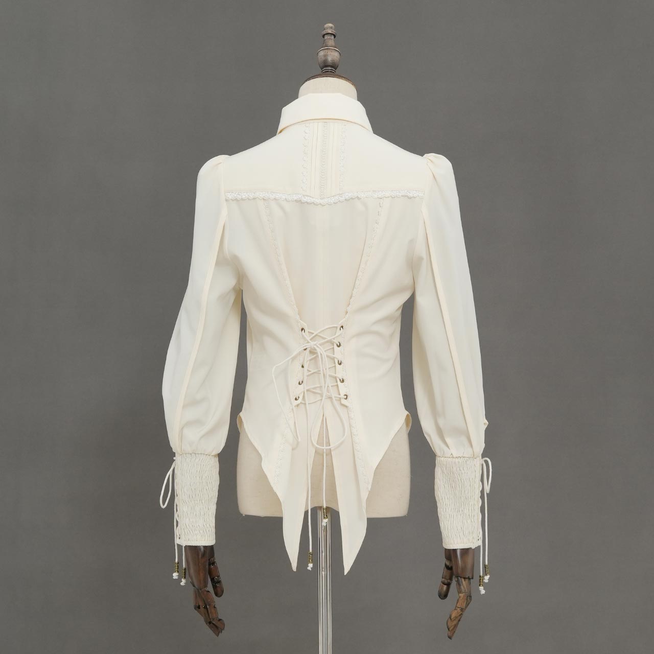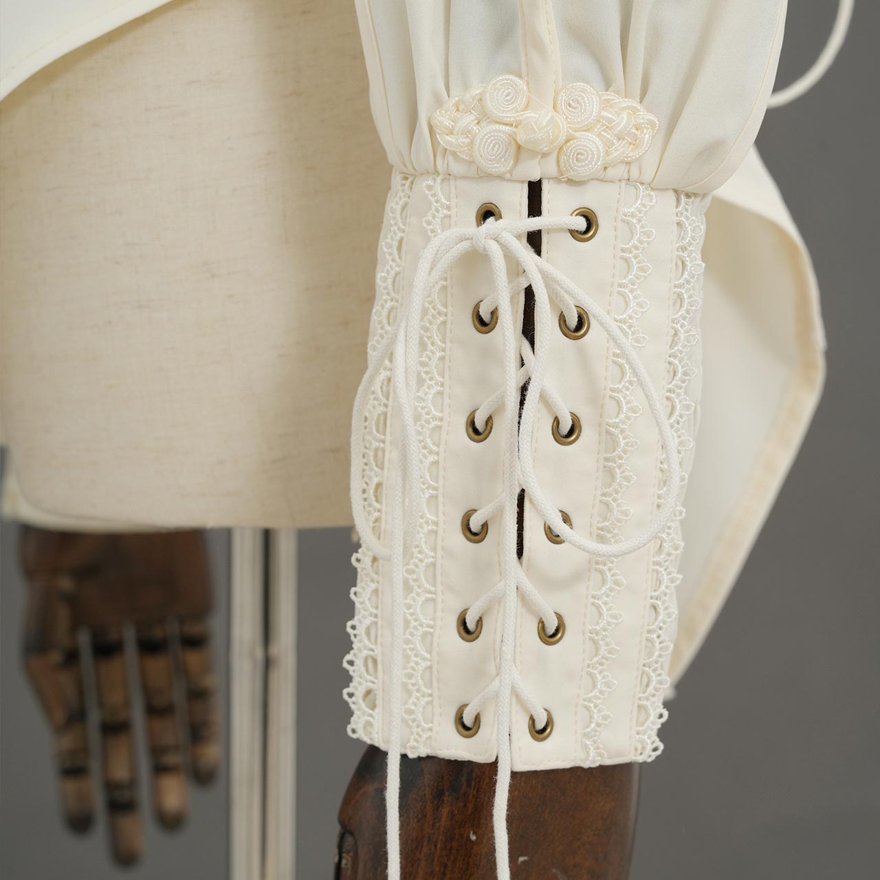 袖口のレースアップやリボンなど、細部にまでこだわりを詰め込みました。