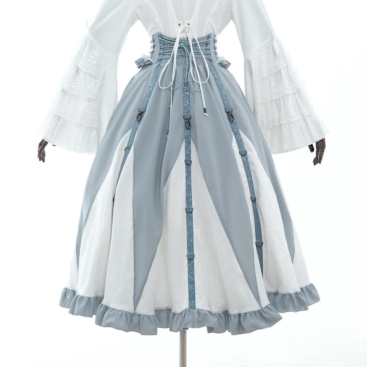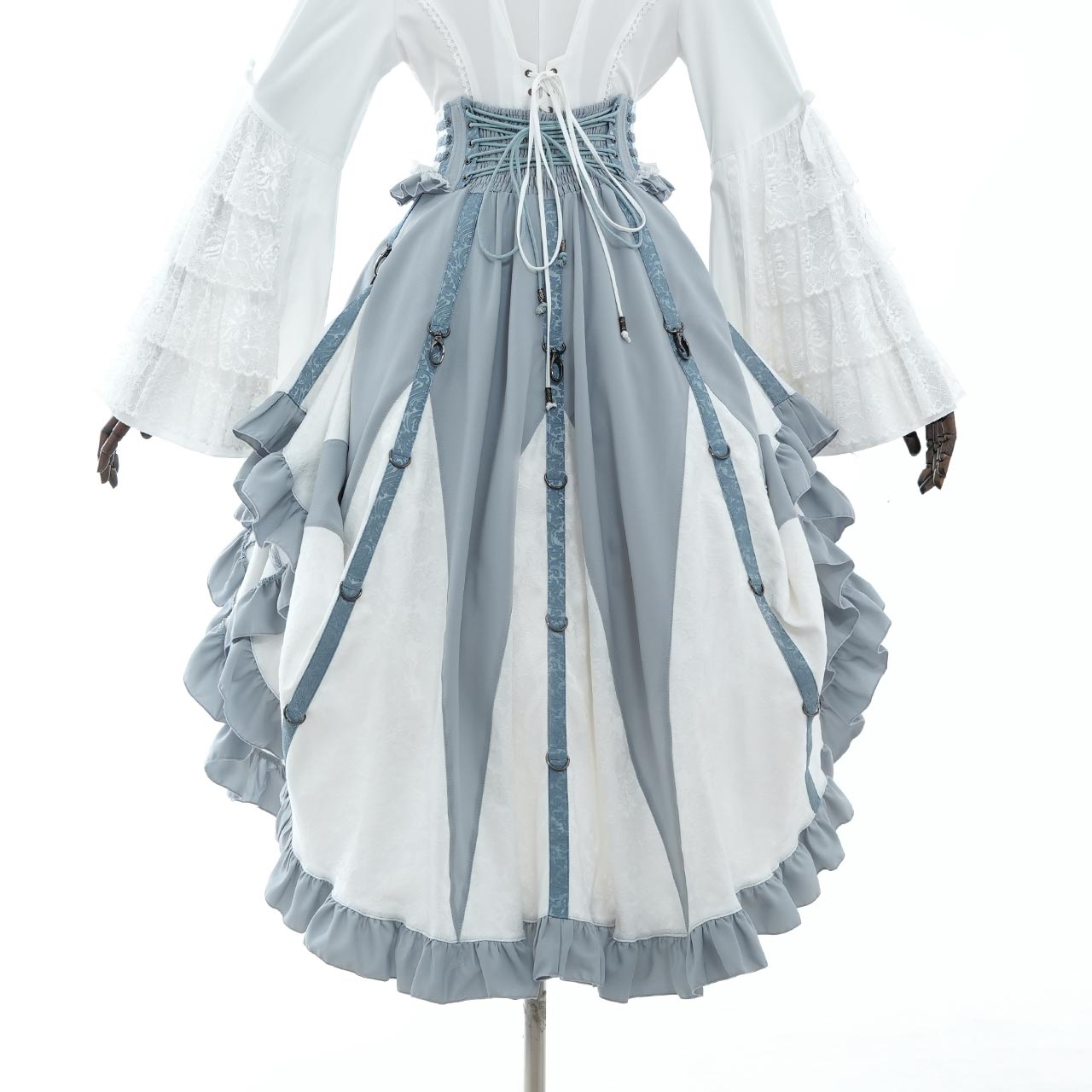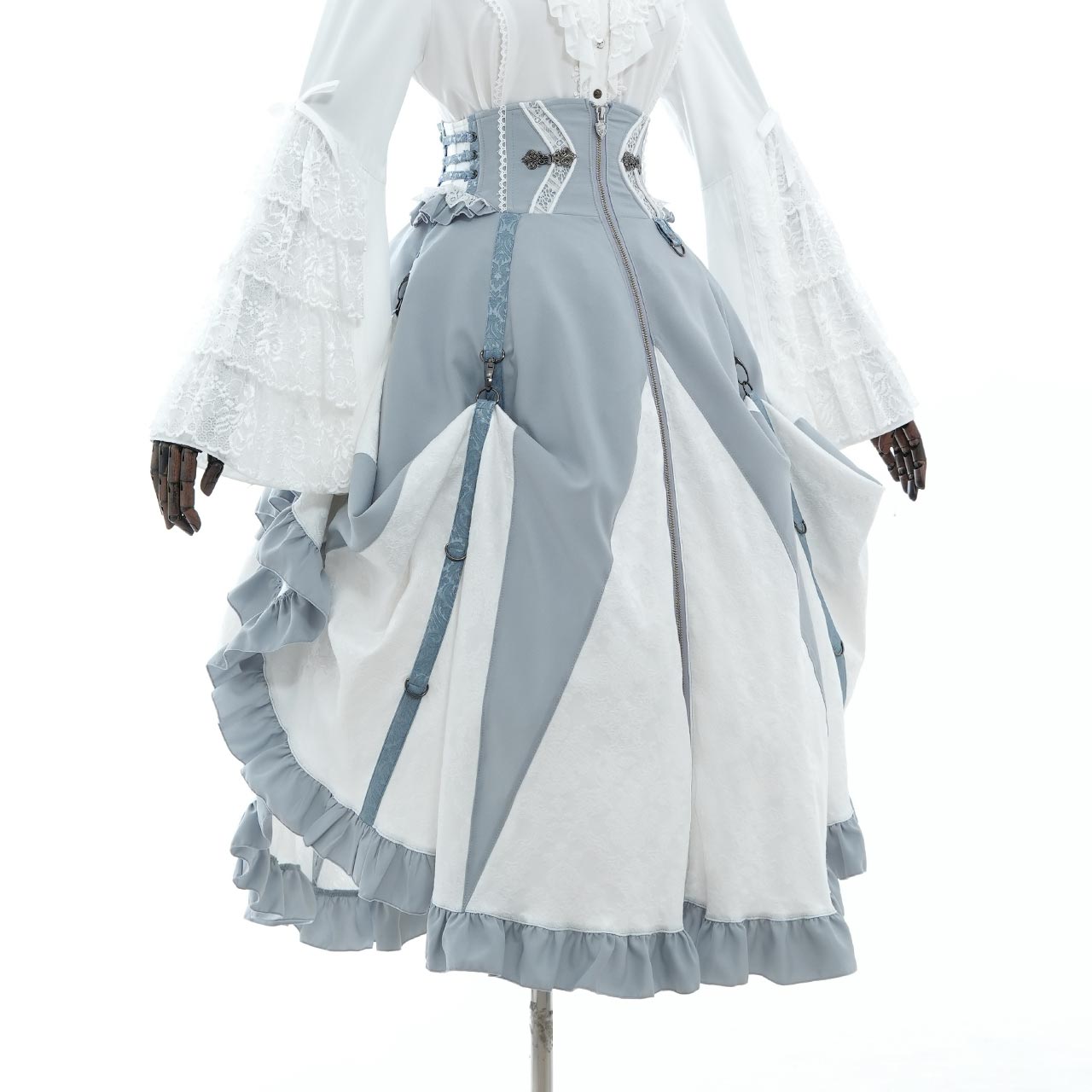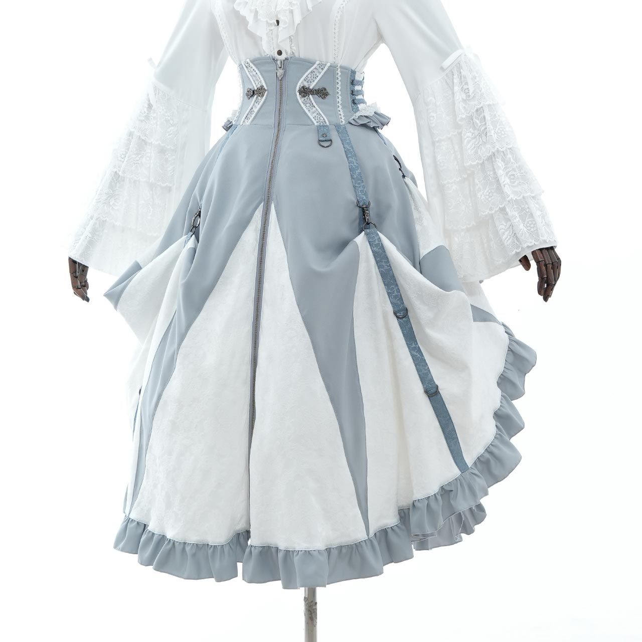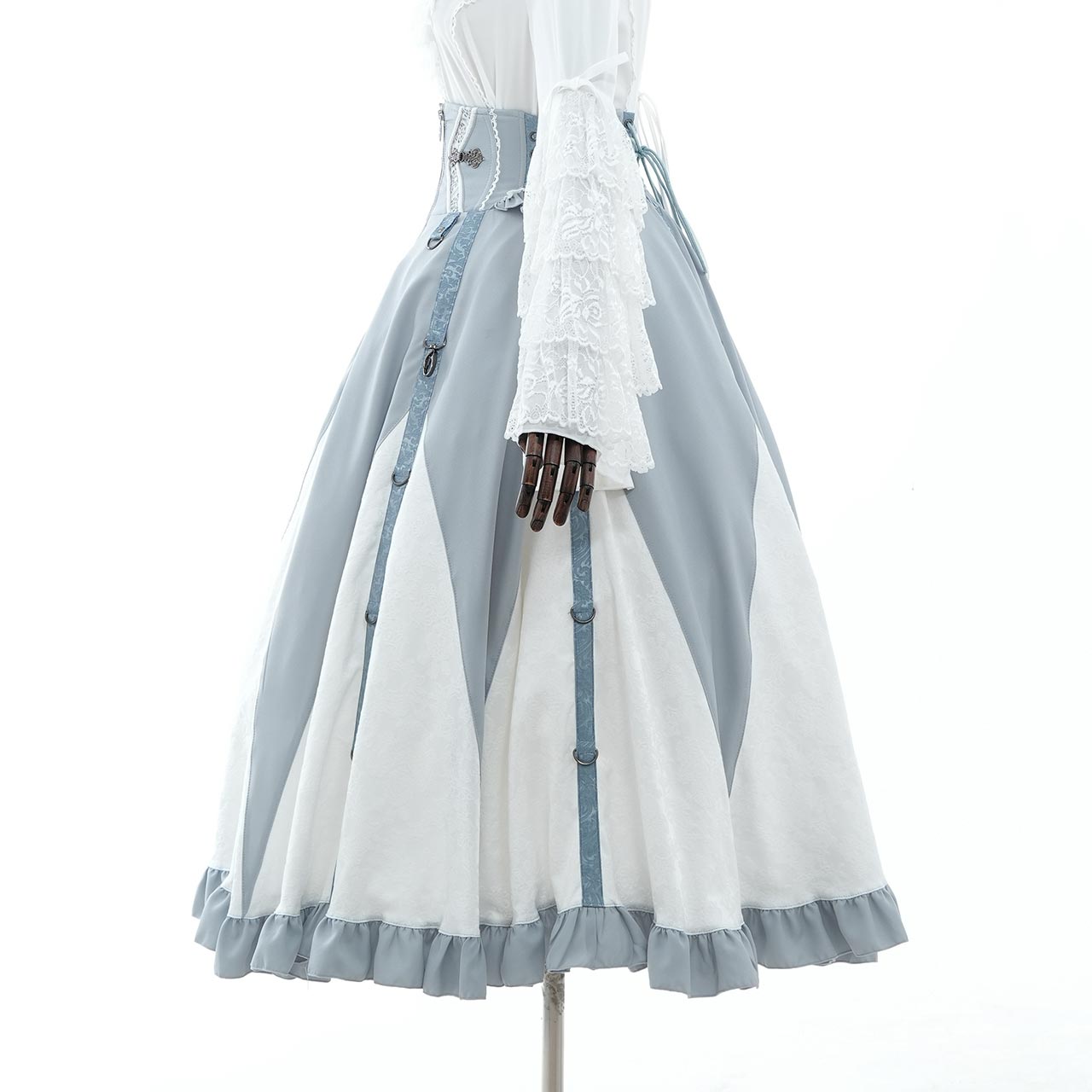 トップスを選ばない、主役級の存在感を放ちます。クラシカルロリィタスタイルからクール/フェミニンテイストまで幅広くお使いいただける万能なロングスカートです。