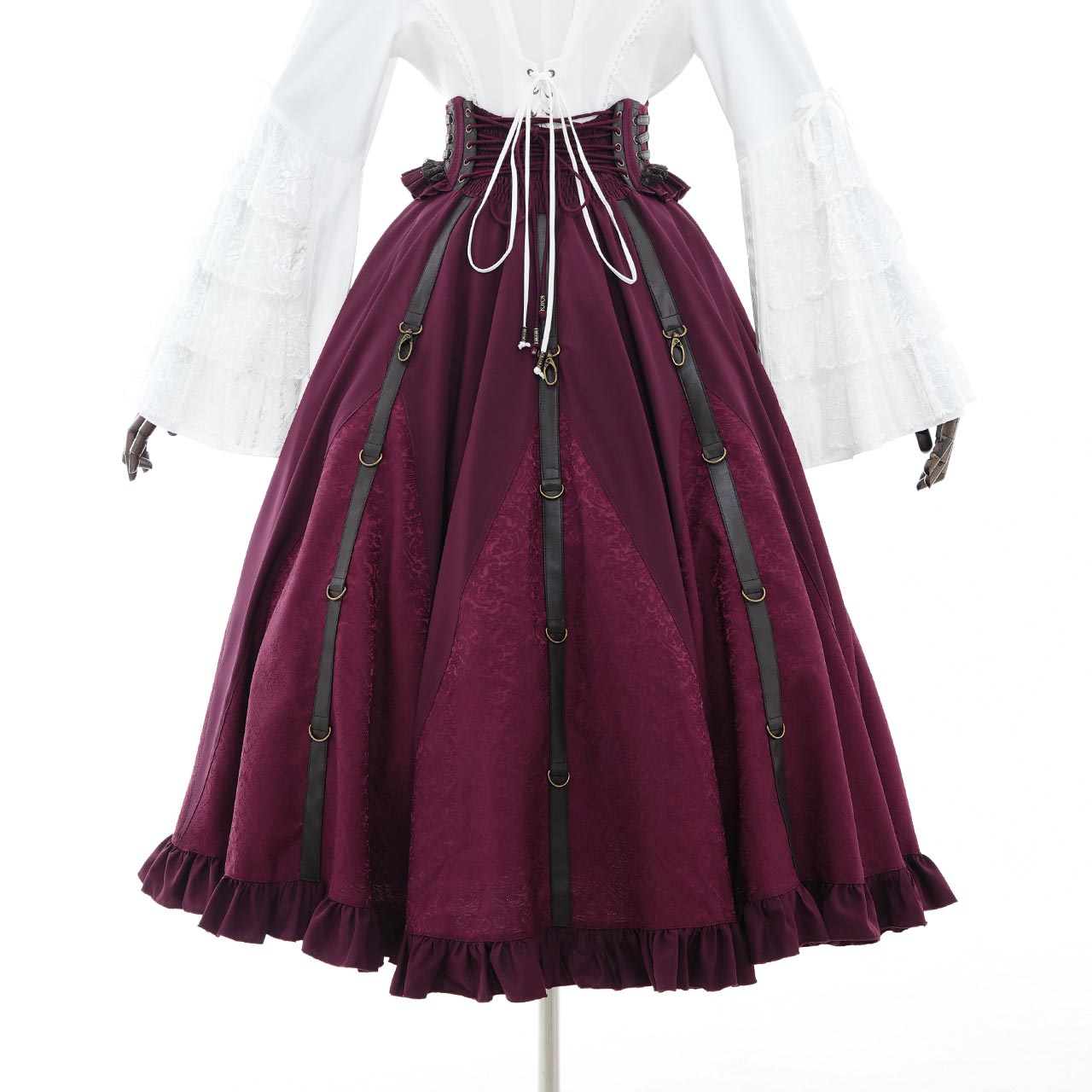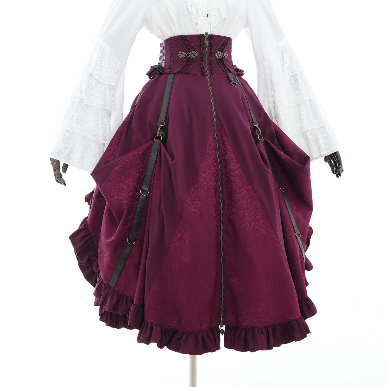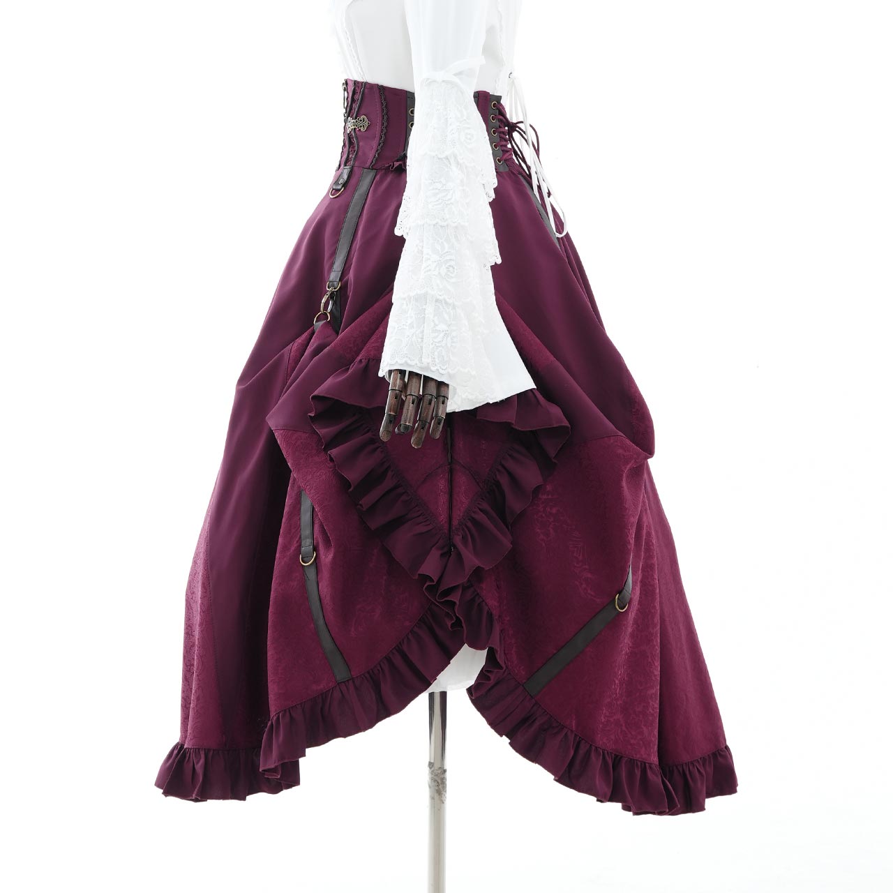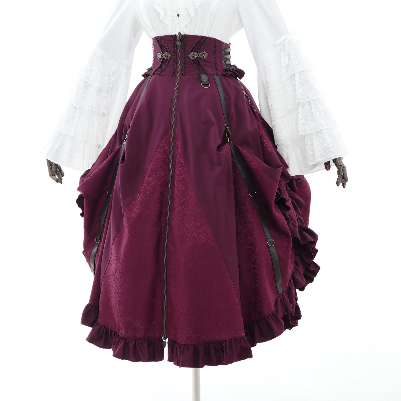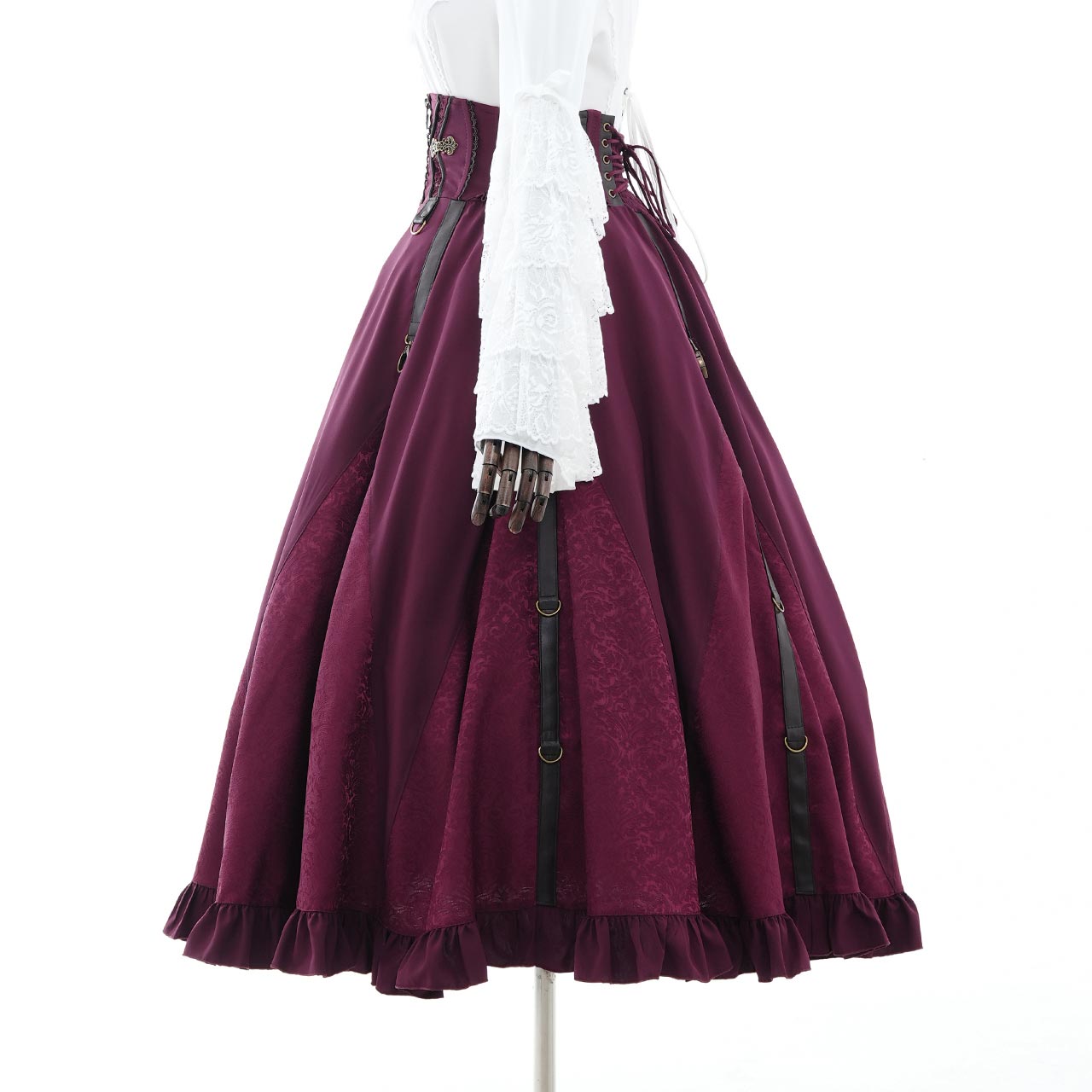 トップスを選ばない、主役級の存在感を放ちます。クラシカルロリィタスタイルからクール/フェミニンテイストまで幅広くお使いいただける万能なロングスカートです。
