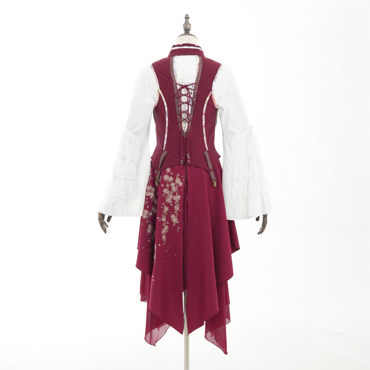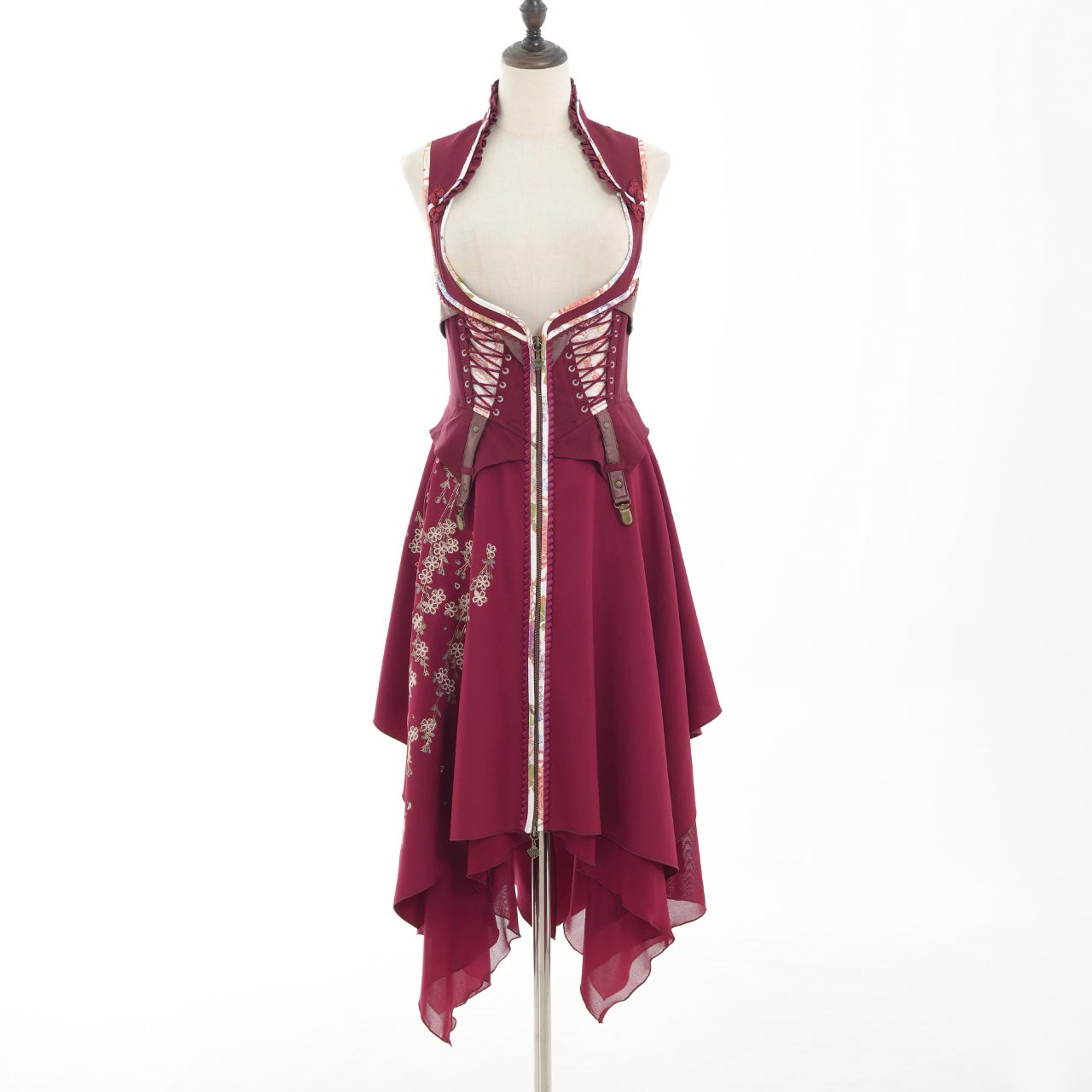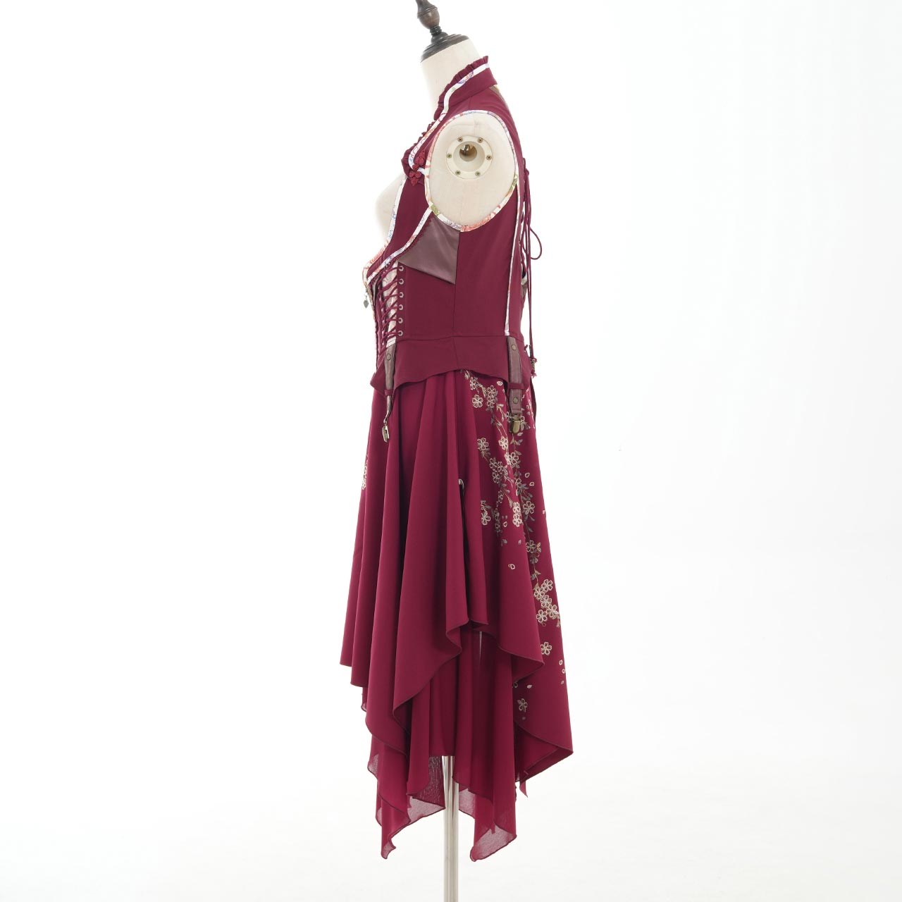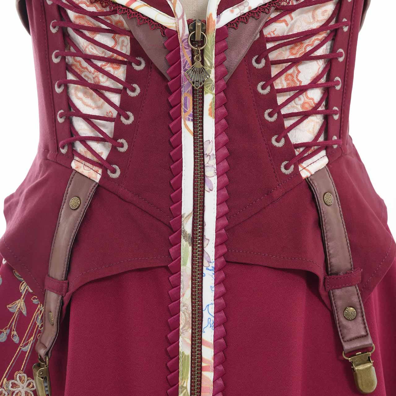 サイドから流れるように広がるプリーツには、繊細な和の図案をあしらい、動作のたびにドラマチックな表情を見せてくれます。
