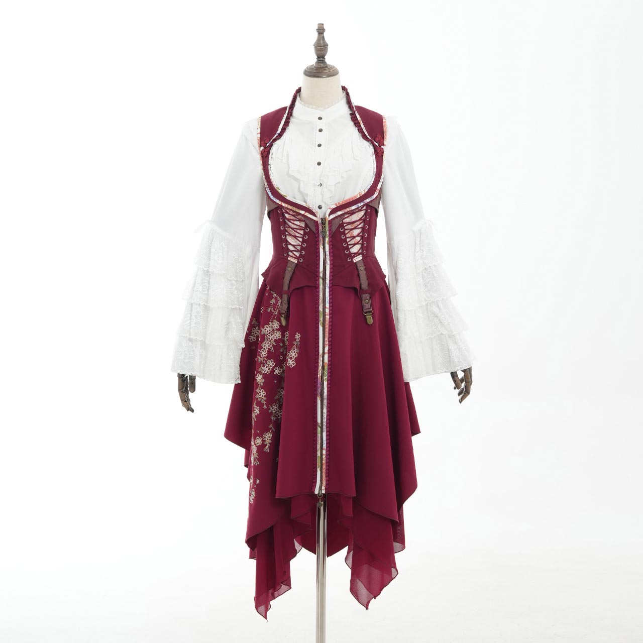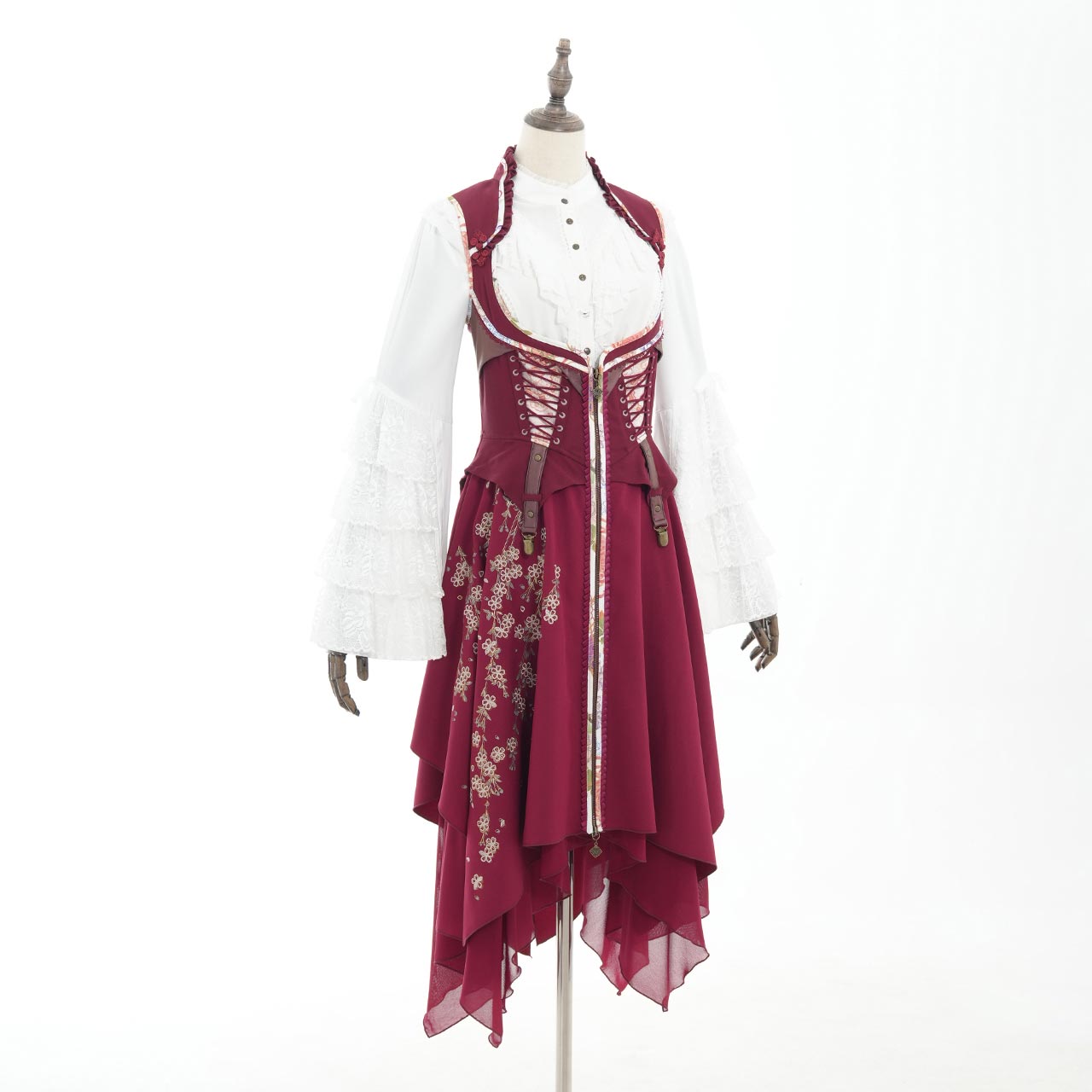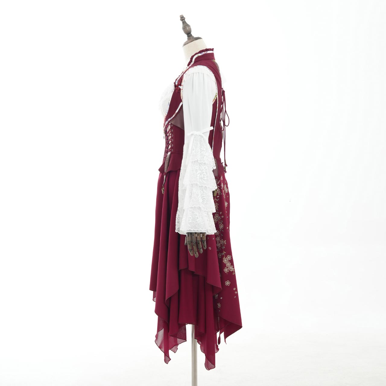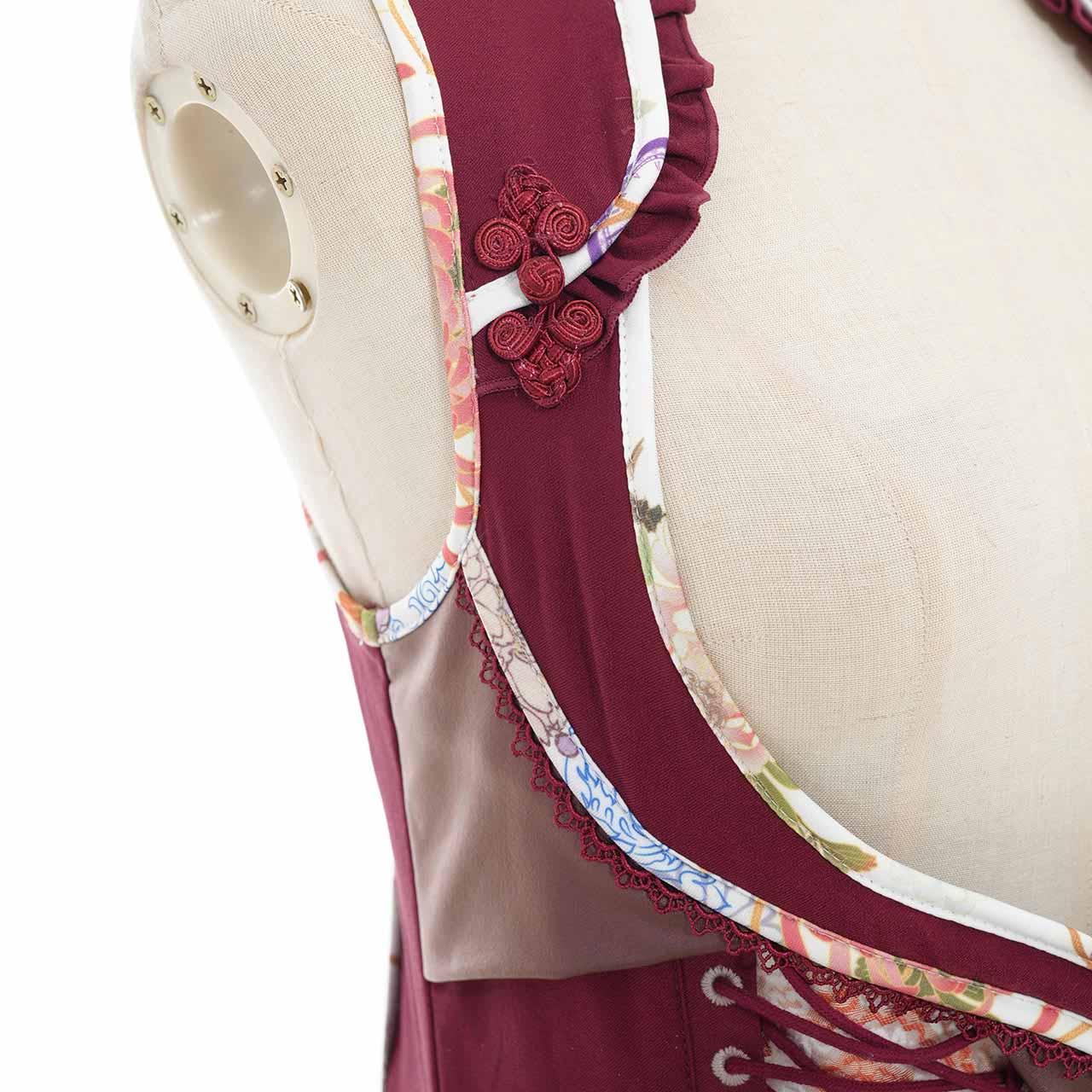 サイドから流れるように広がるプリーツには、繊細な和の図案をあしらい、動作のたびにドラマチックな表情を見せてくれます。