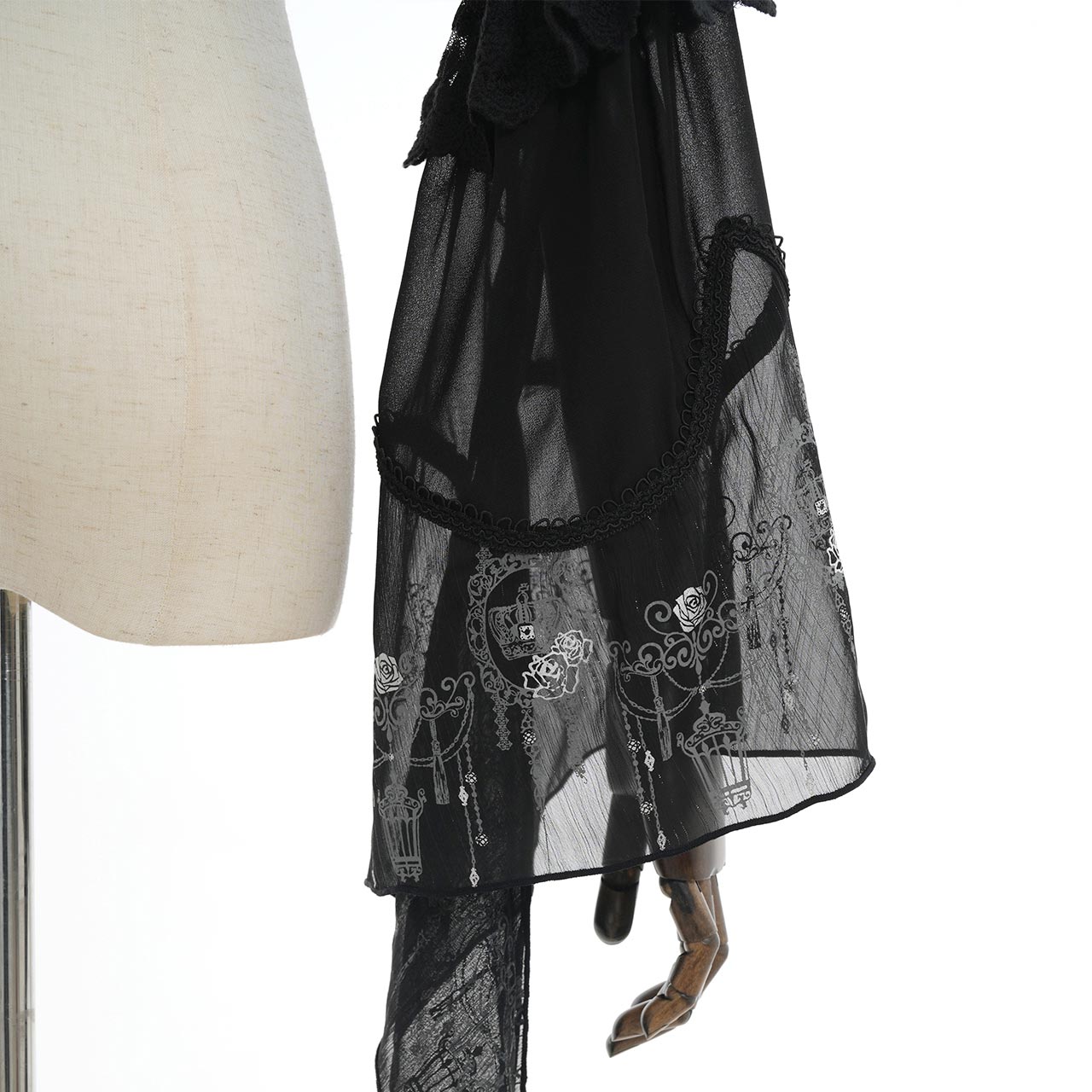 シフォン生地のお袖は取り外しが可能です。 華やかなロングシルエットと、ちょっとしたパーティにもおすすめなショート丈ボレロの2WAY仕様としてお楽しみいただけます