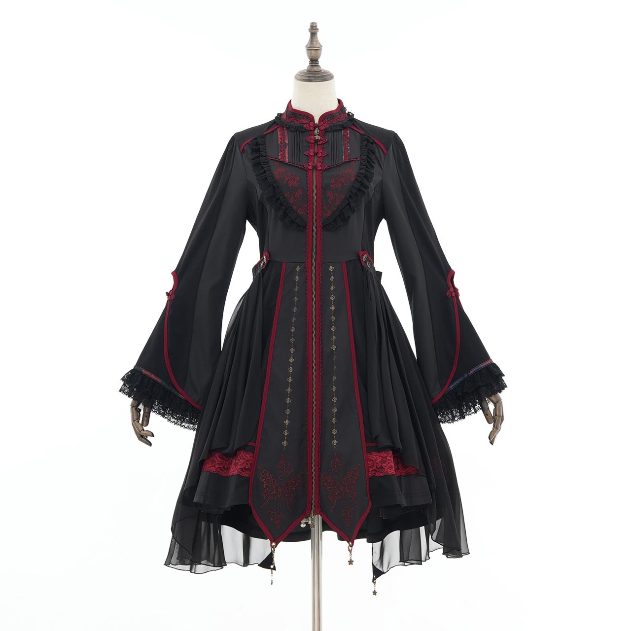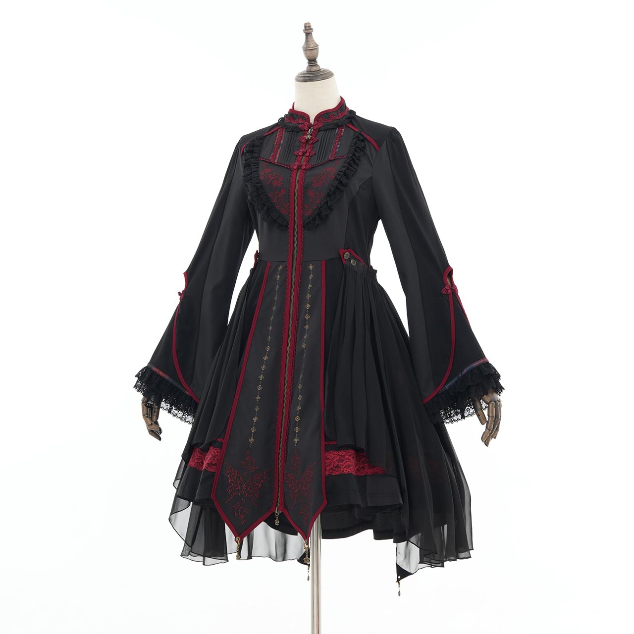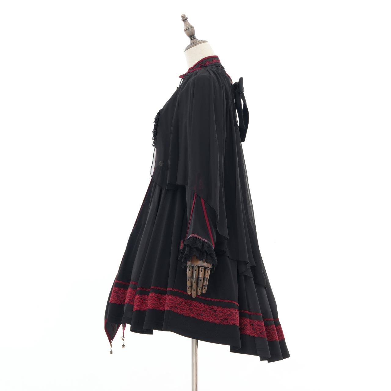 縦に流れるパネル構成が、歩くたびに揺れ動くデザインワンピース。