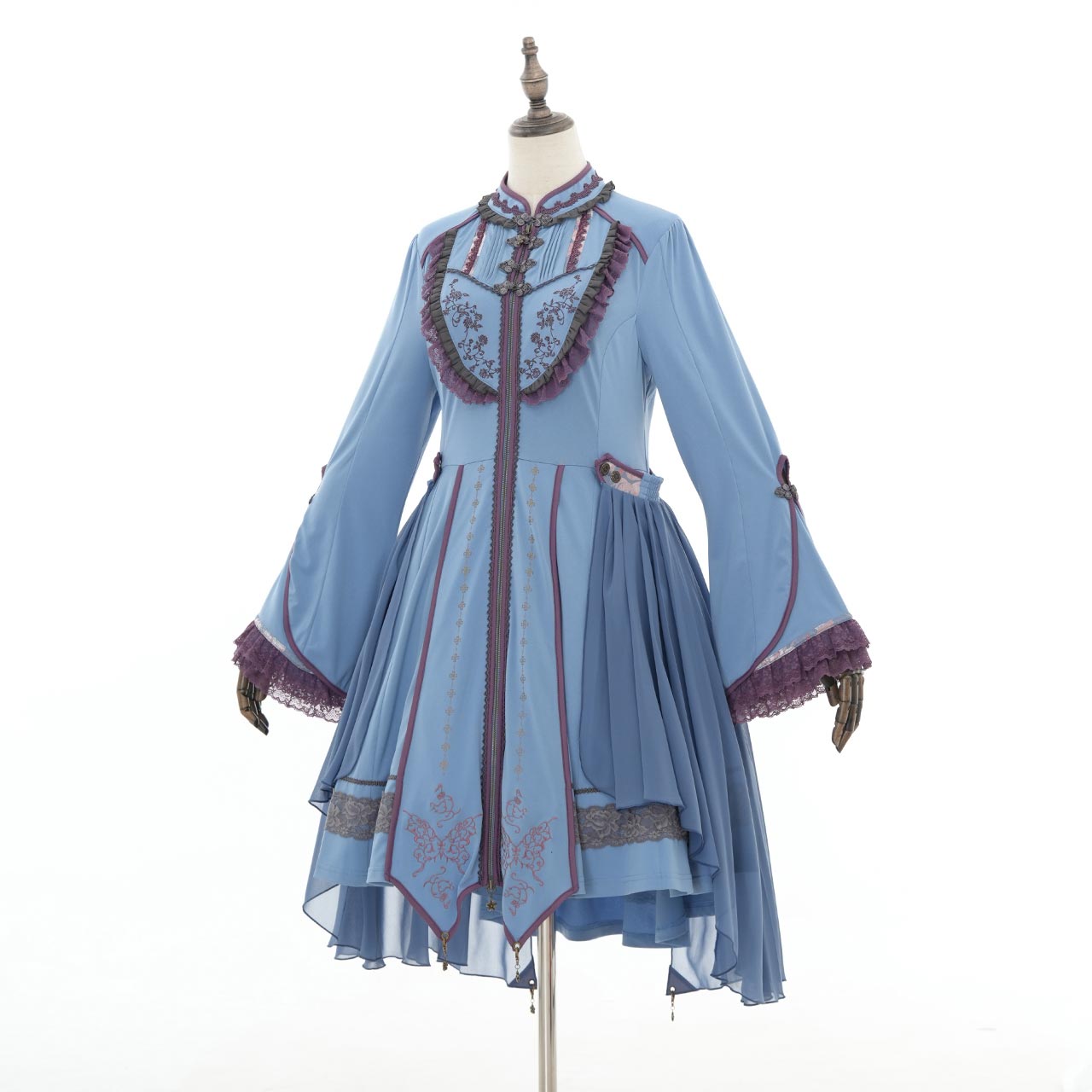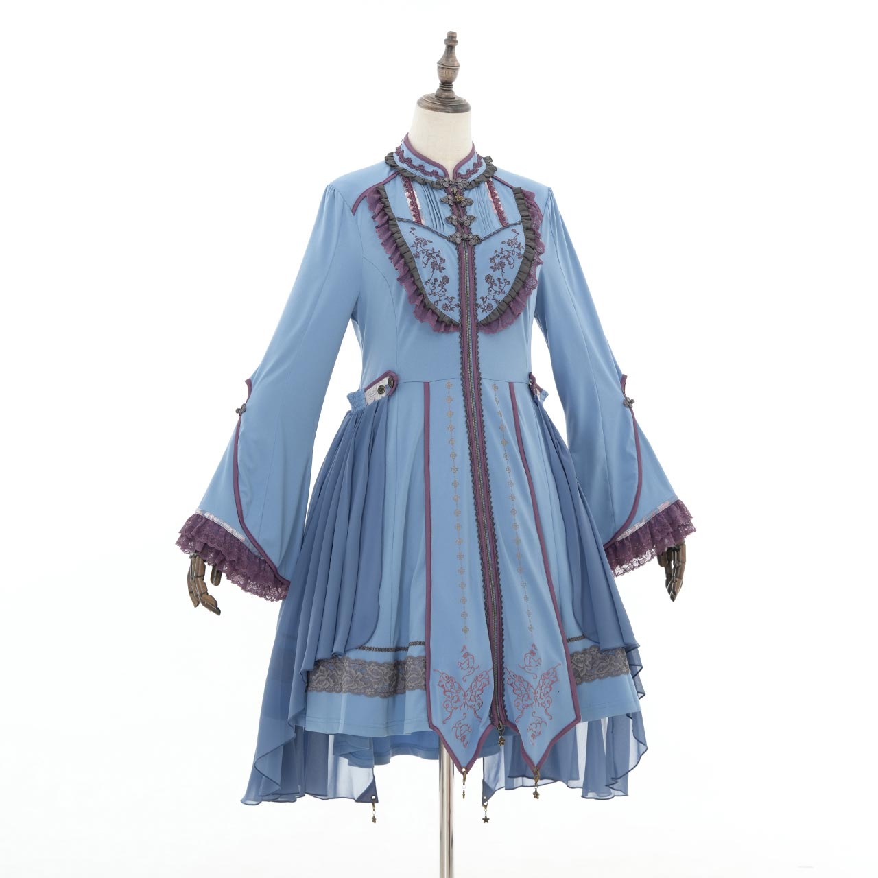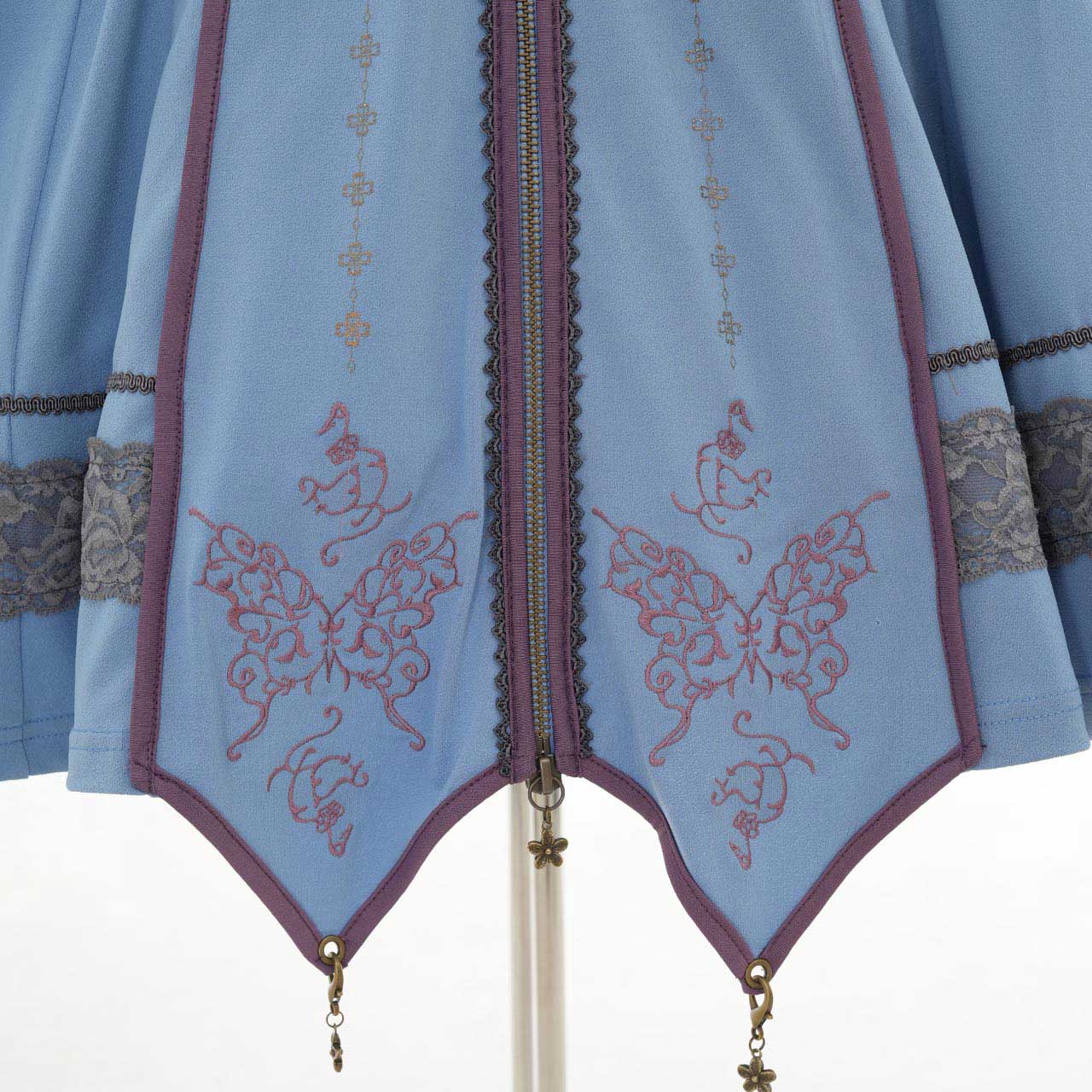縦に流れるパネル構成が、歩くたびに揺れ動くデザインワンピース。