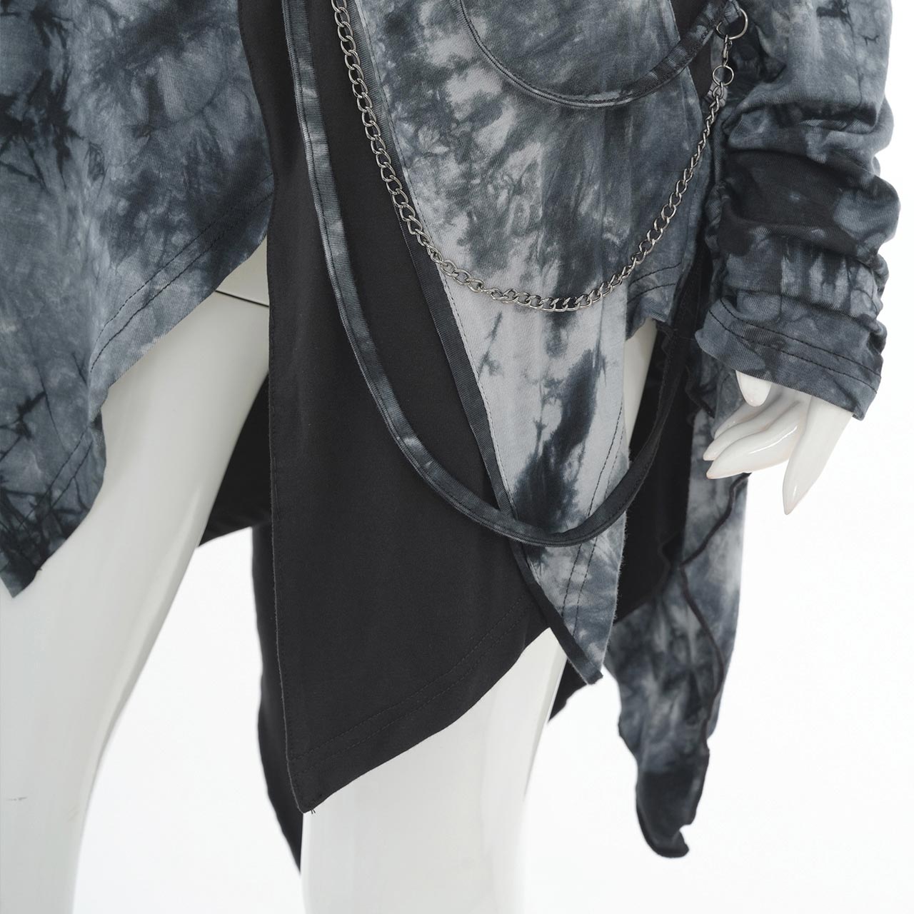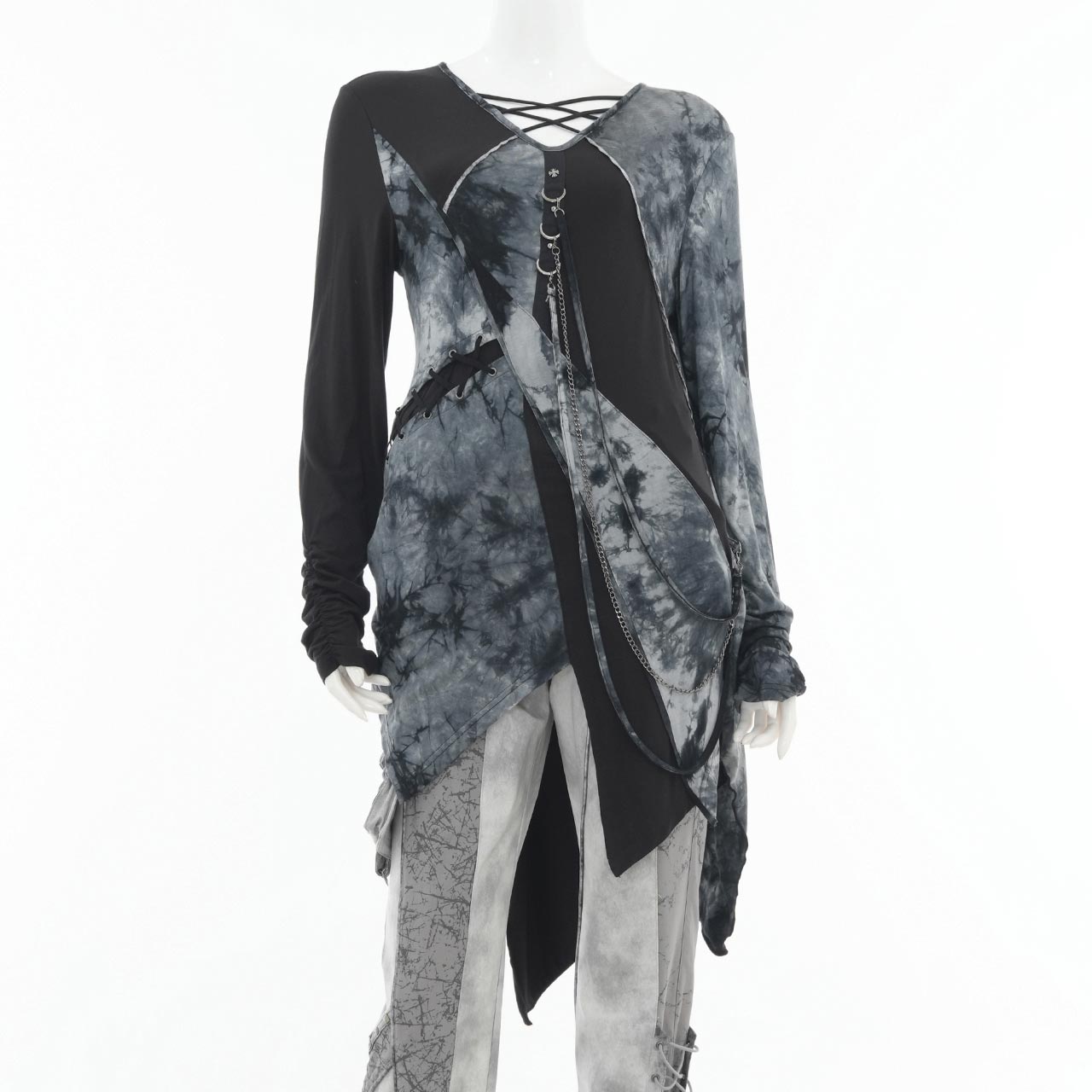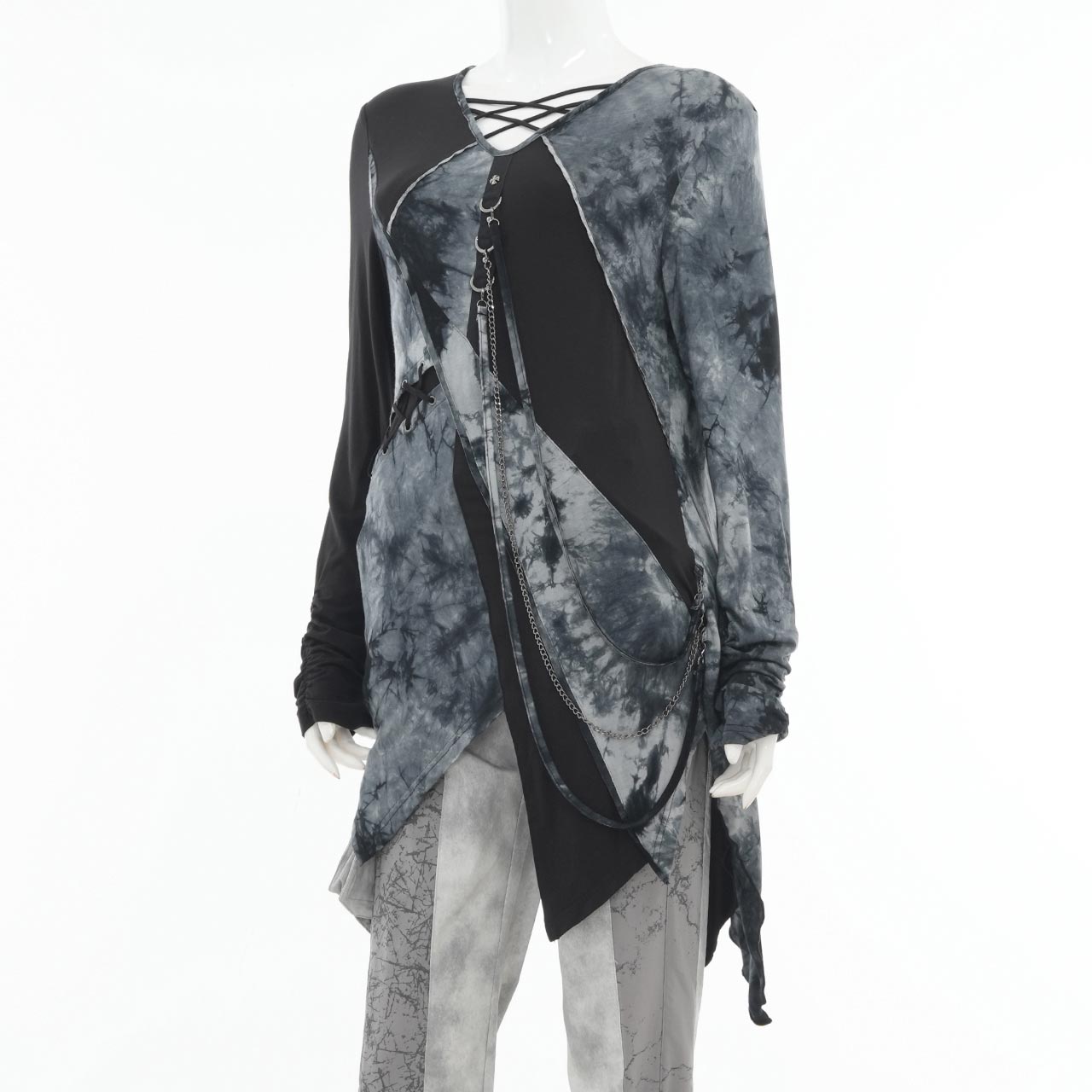 飾り紐やチェーンは取り外しが可能で、スタイリングに合わせて表情を変えられるレイヤード風カットソー。