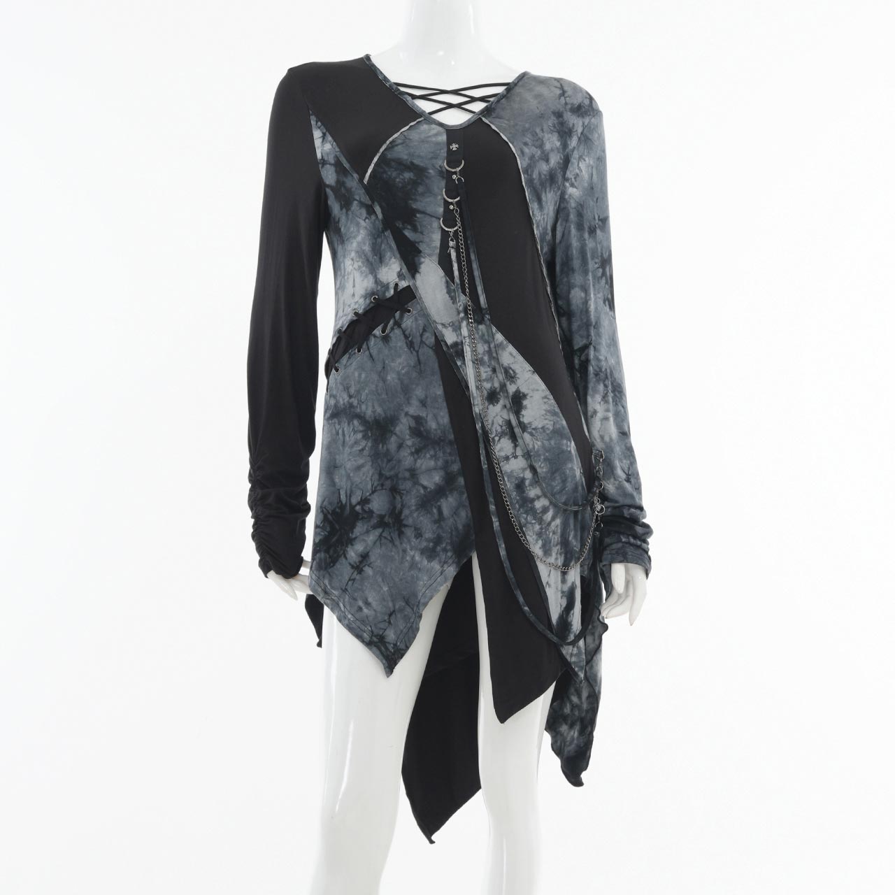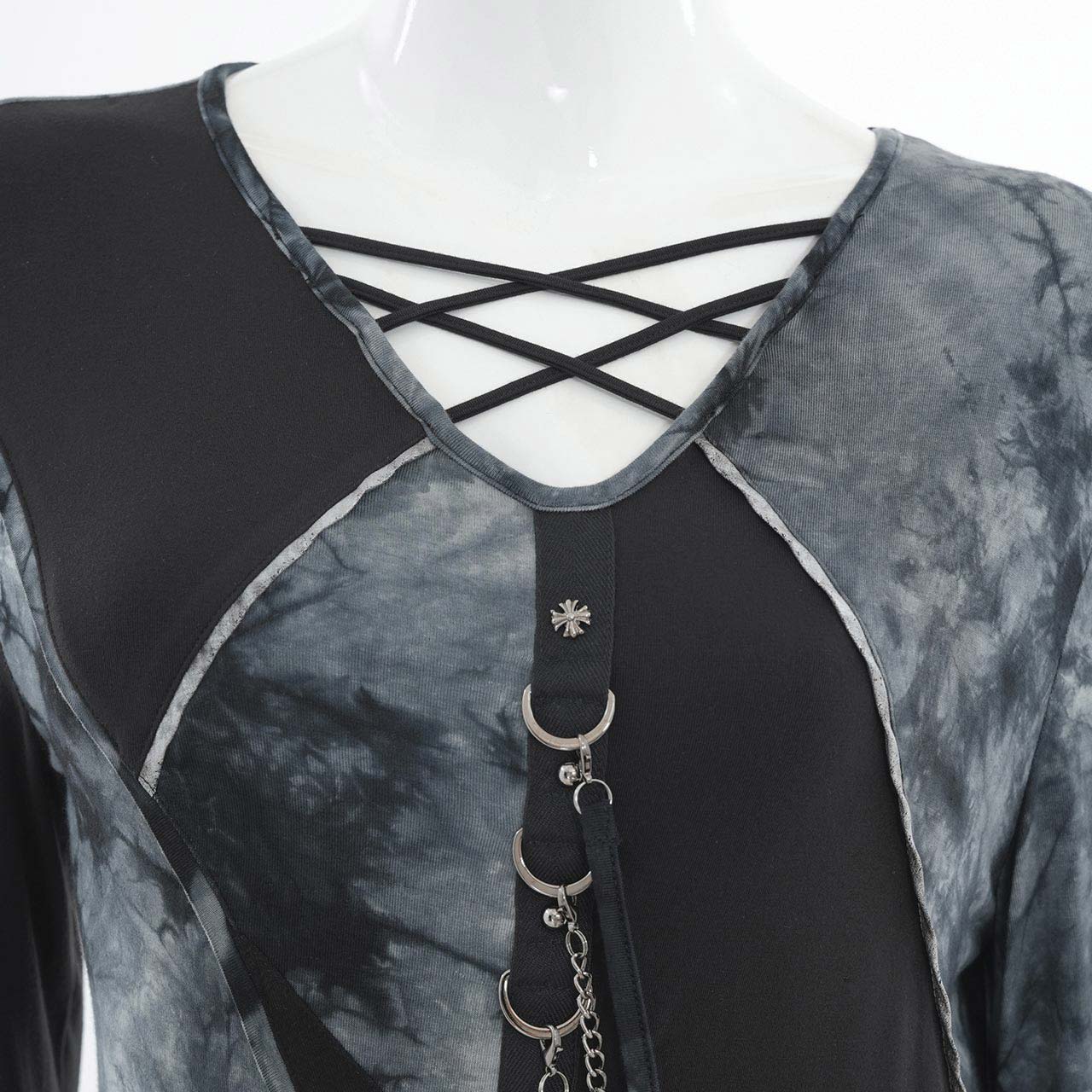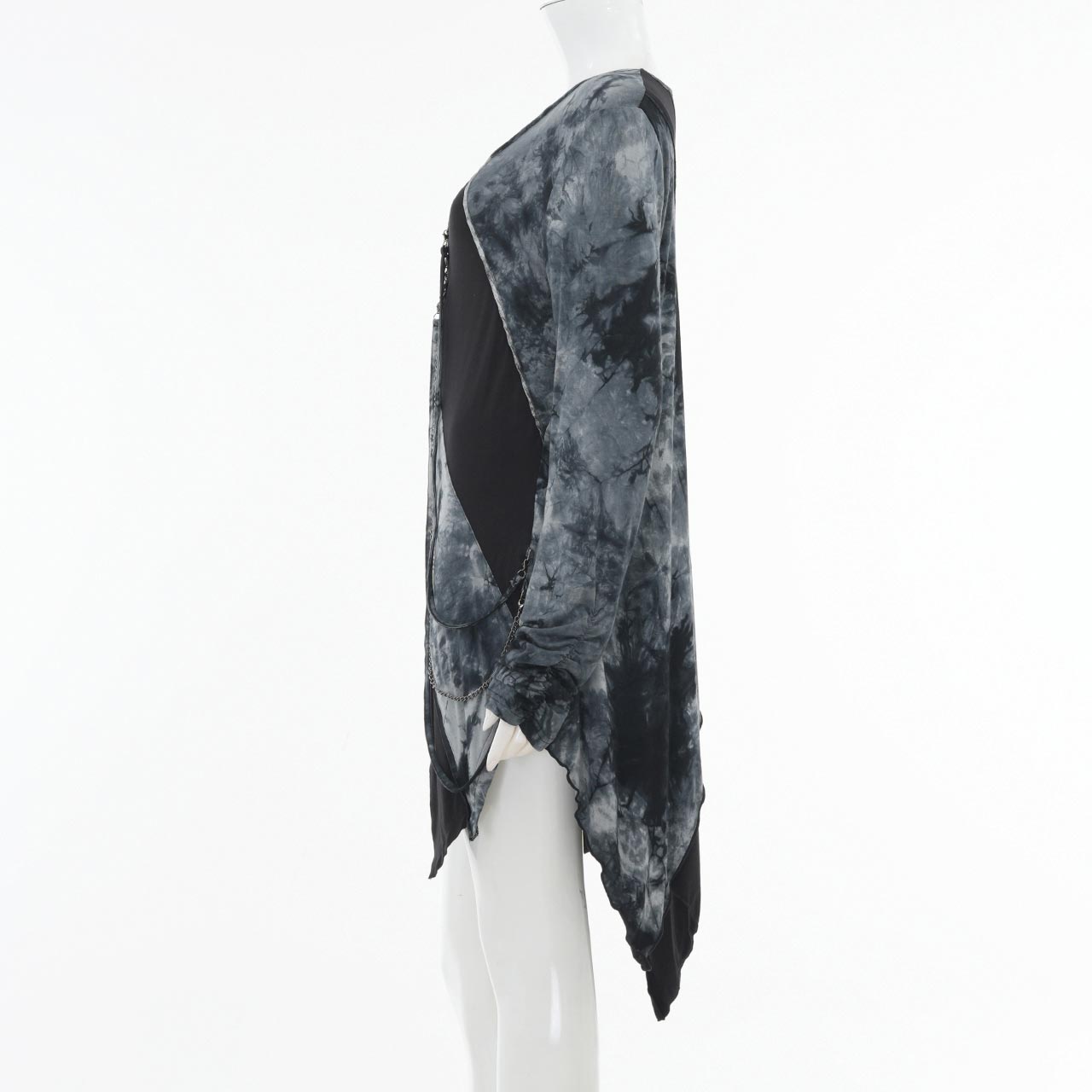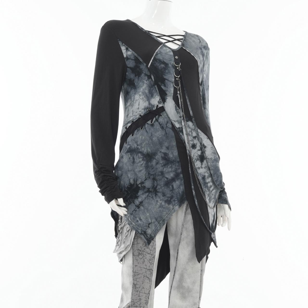 飾り紐やチェーンは取り外しが可能で、スタイリングに合わせて表情を変えられるレイヤード風カットソー。