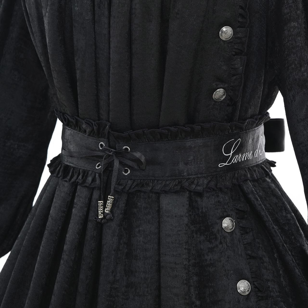 付属のフリルベルトでウエストを絞れば、シルエットにメリハリが生まれ、よりクラシカルな印象に。