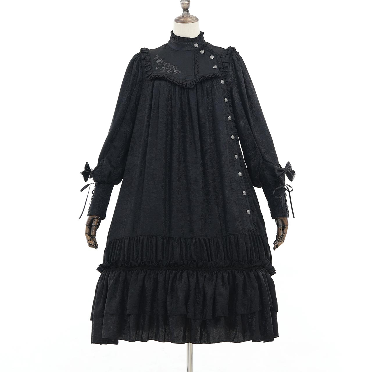 きらめく絵画のような美しい生地を贅沢に使用した、Aラインのロリィタワンピース。