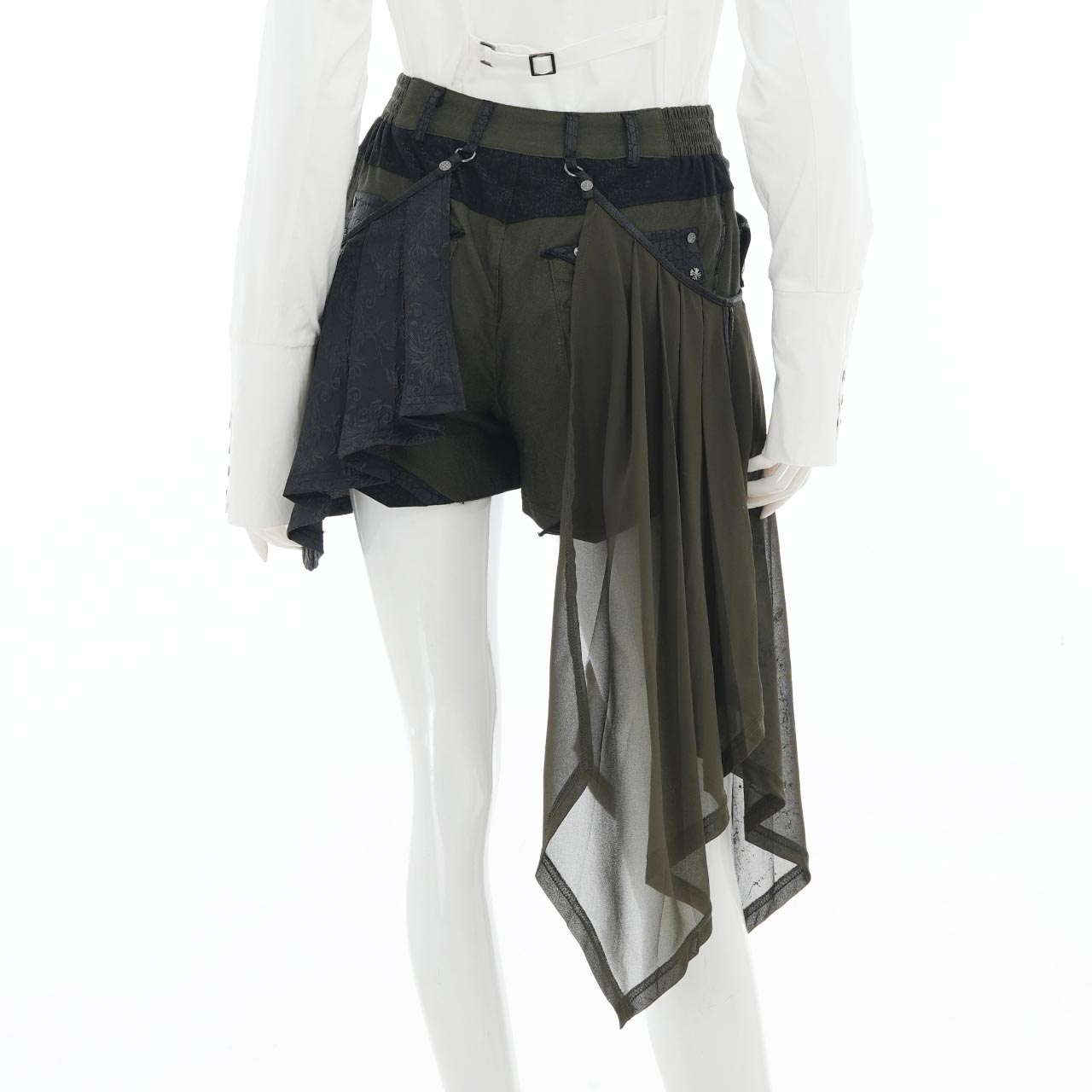 伸縮性のある生地を使用し、ウエストは一部シャーリング仕様のため、快適にご着用いただけます。