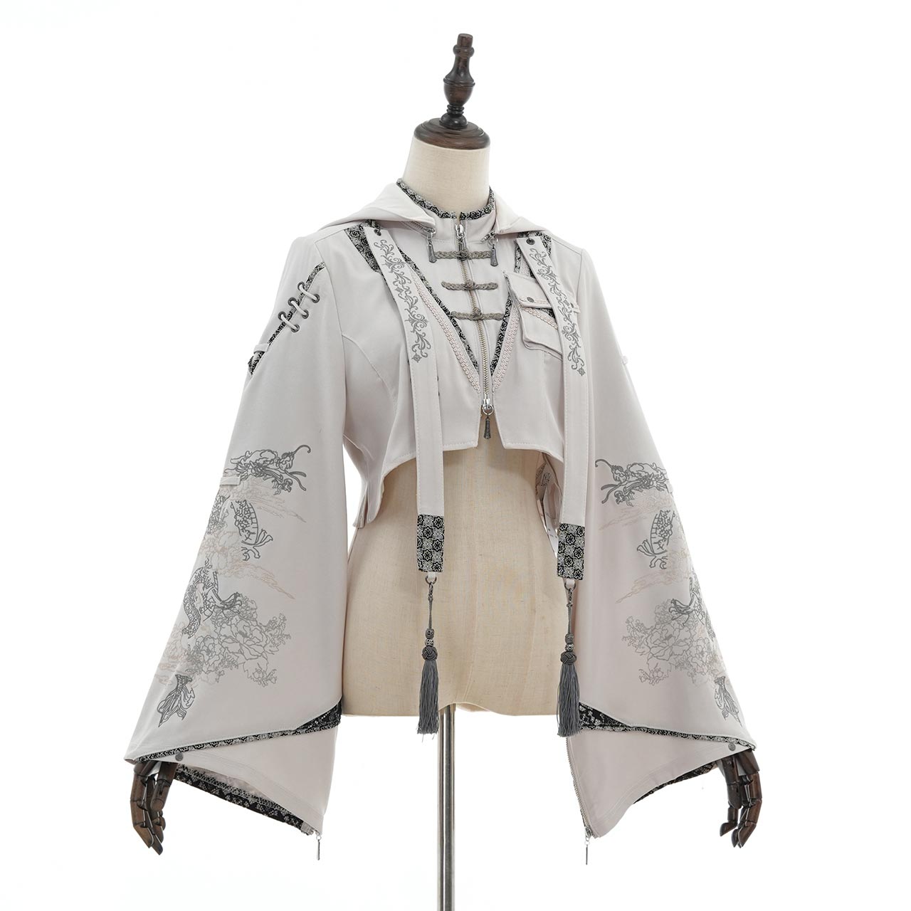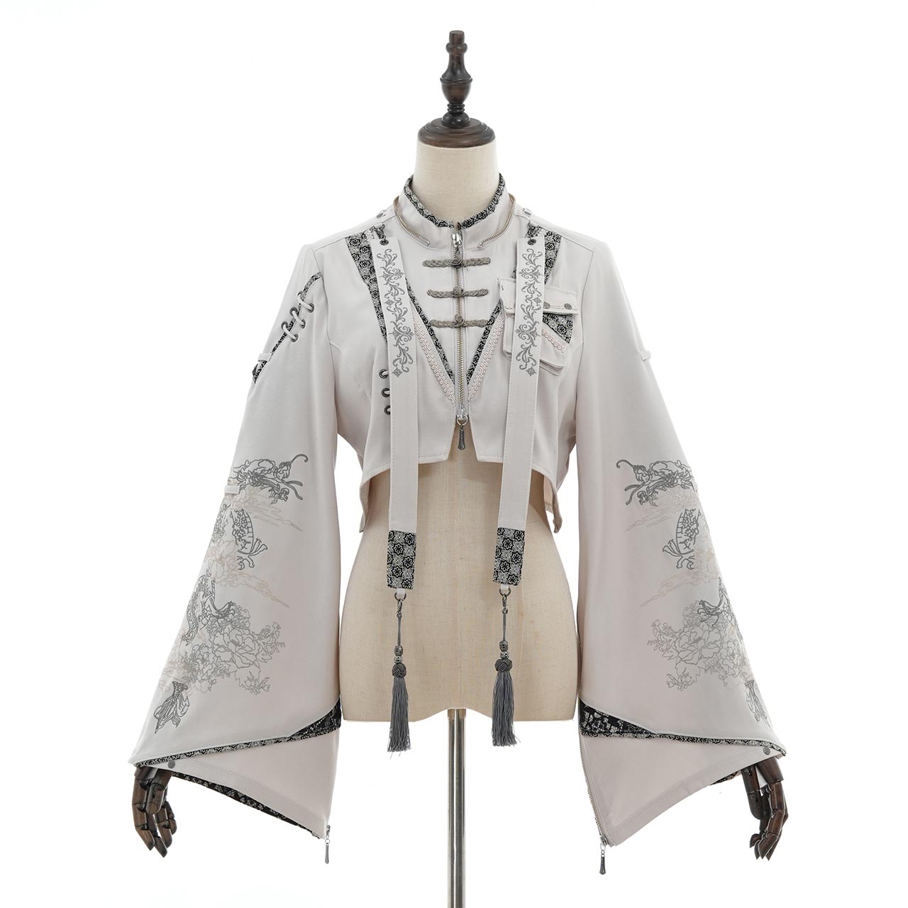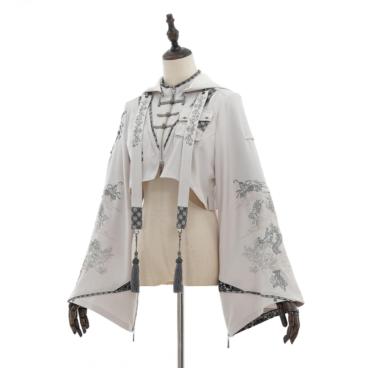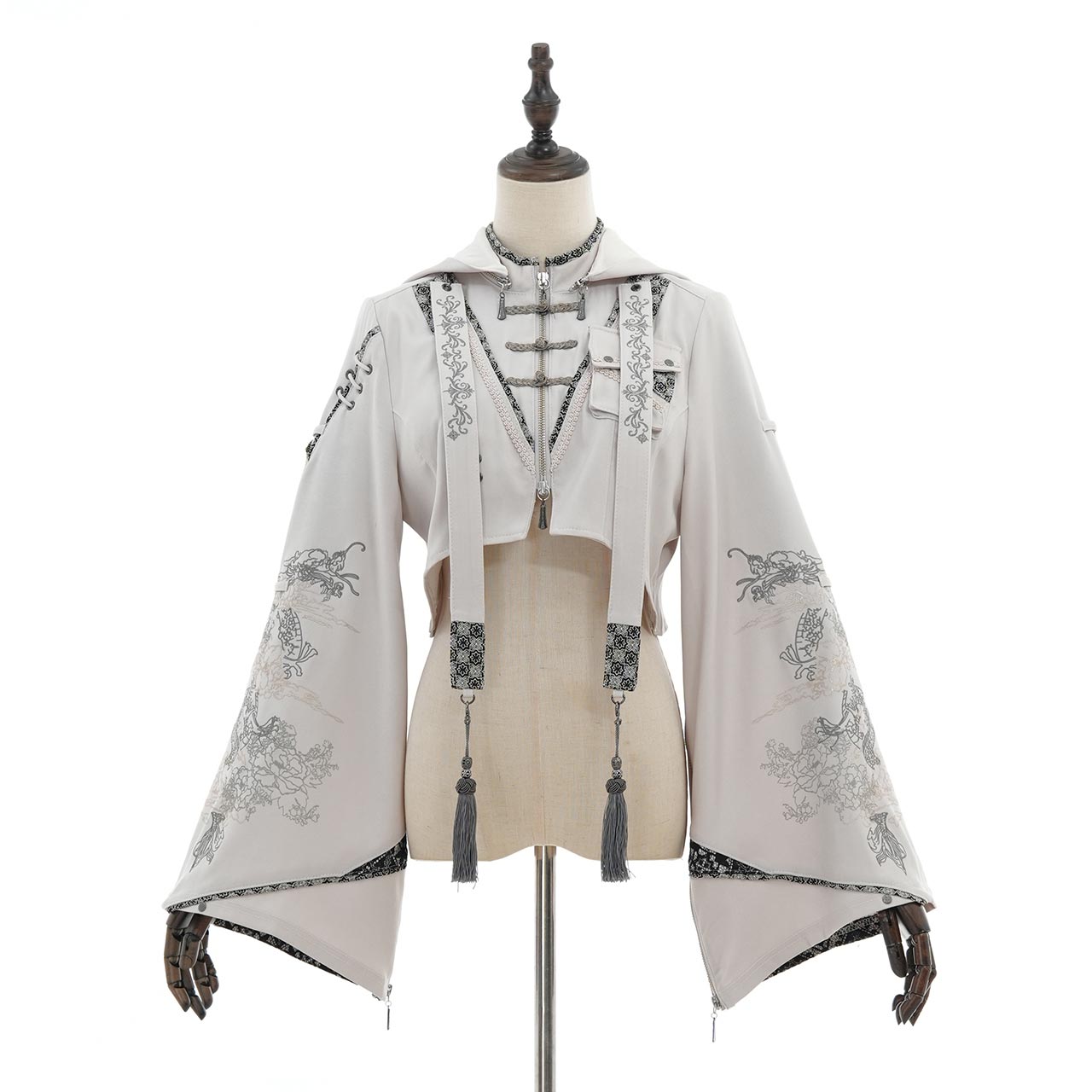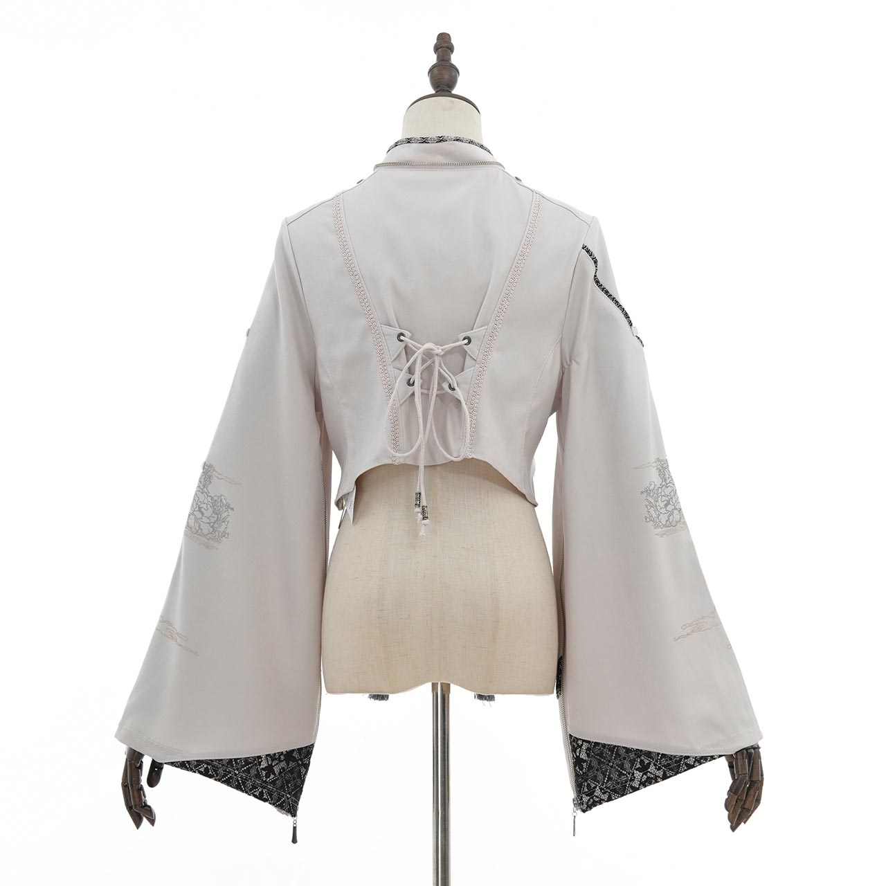古風なはいから×キョンシー風デザインが斬新な着物袖フーディーボレロ。