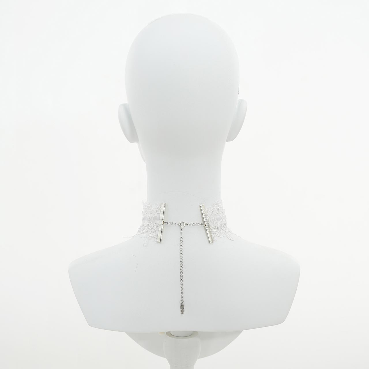 繊細なレースに編み上げデザインを組み合わせた、気品あふれるチョーカー。首元を優雅に引き締めながら、クラシカルで退廃的な美しさを演出します。