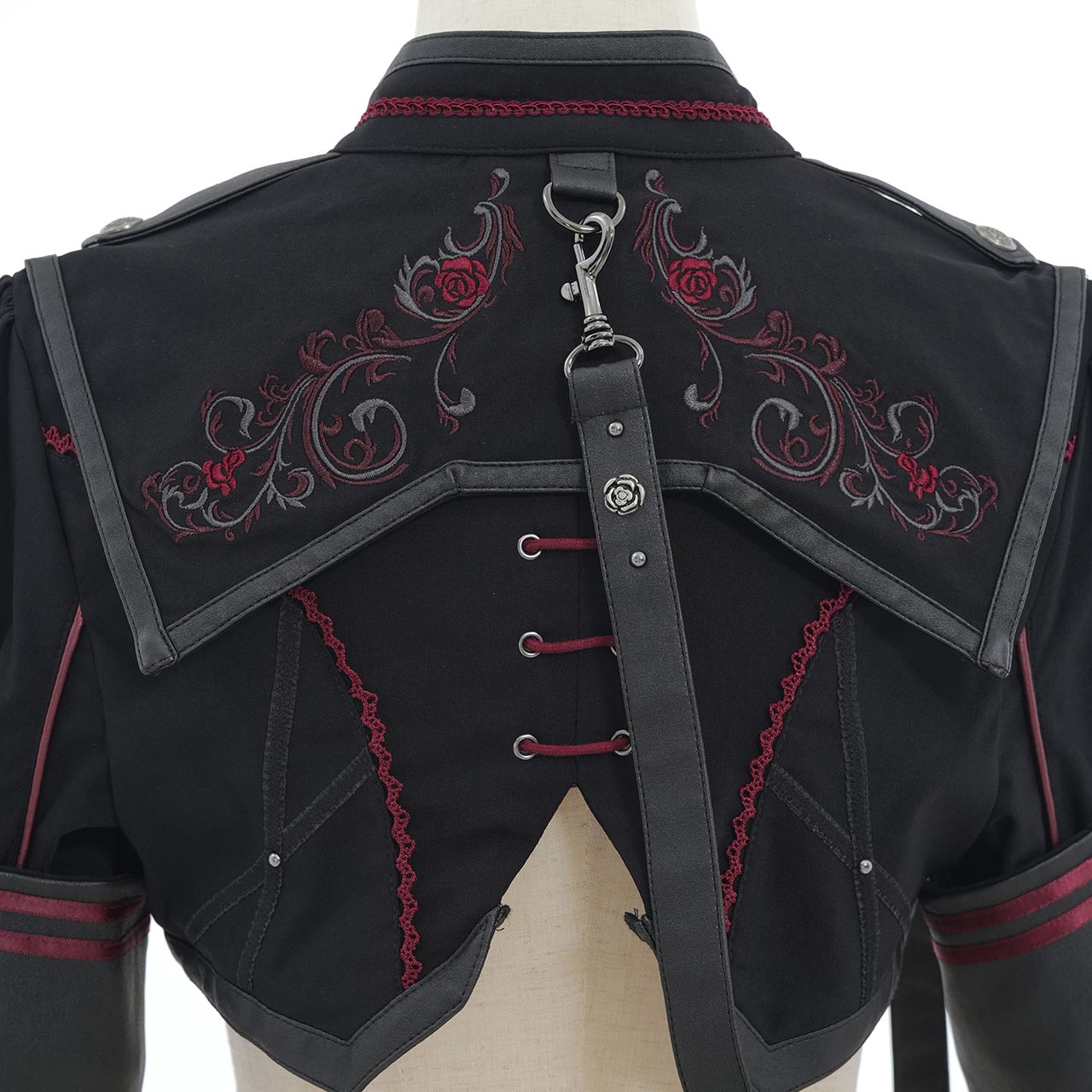 背面ヨークは猫耳&贅沢な薔薇刺繍をあしらいました。